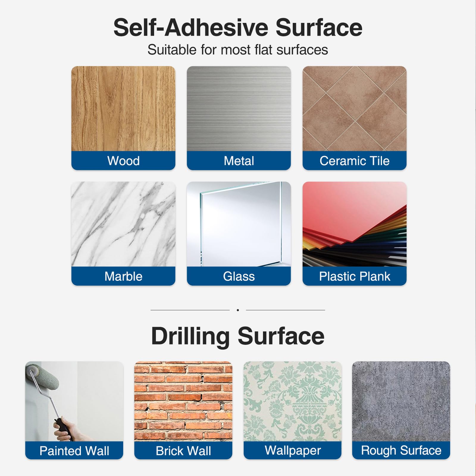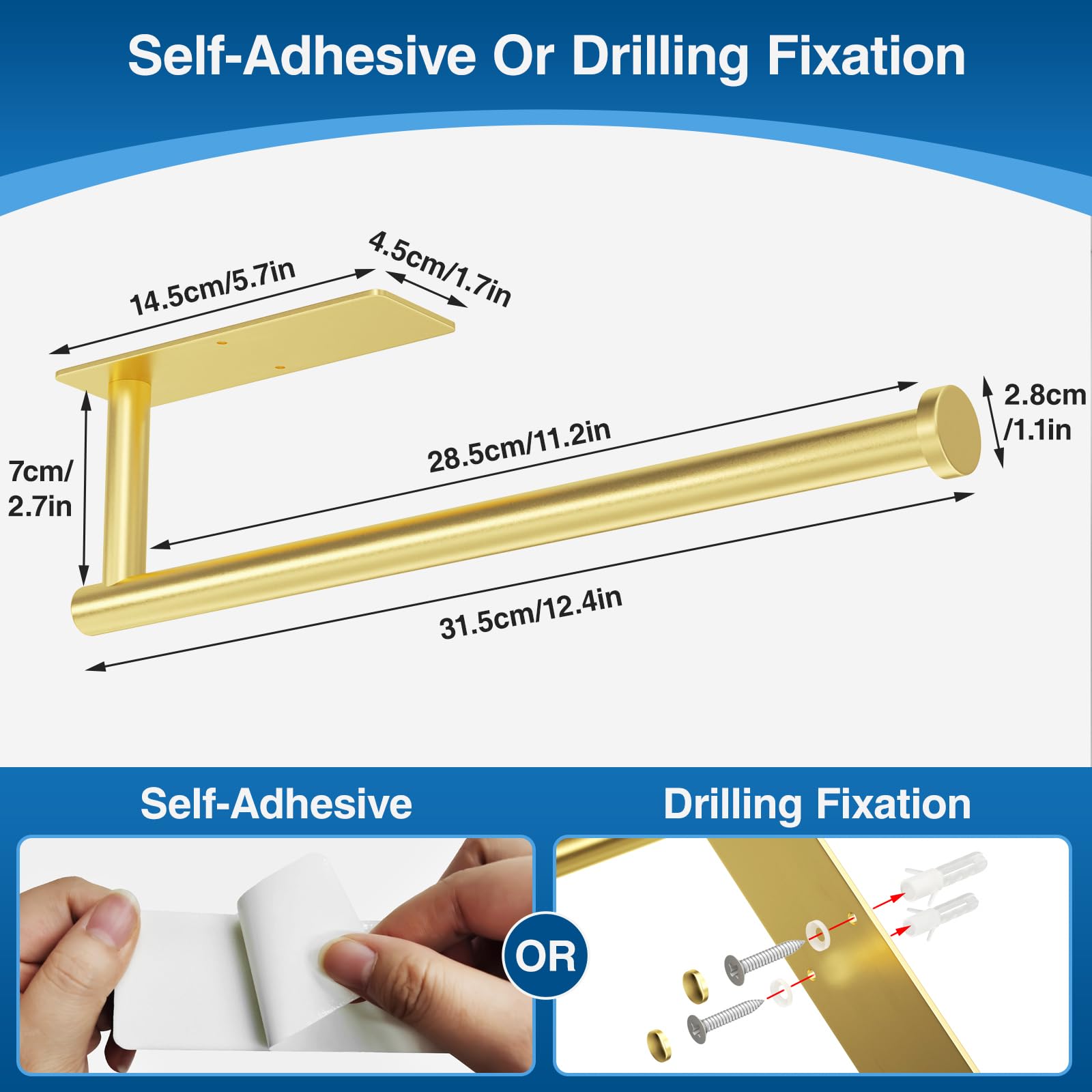 Easy Installation: There are two ways to install this paper towel holder, self-adhesive or drilled, you can freely choose the appropriate installation method according to your wall or cabinet situation.