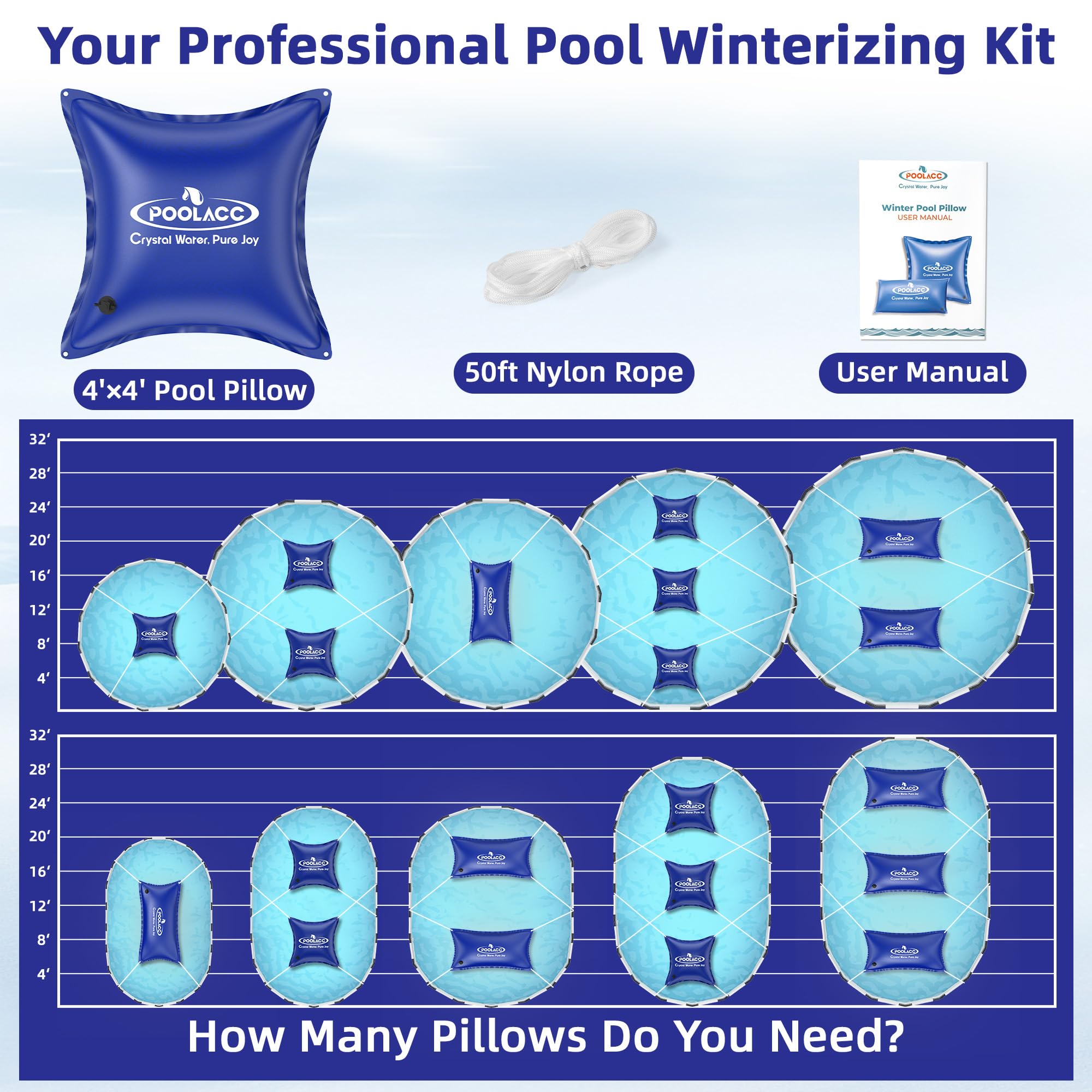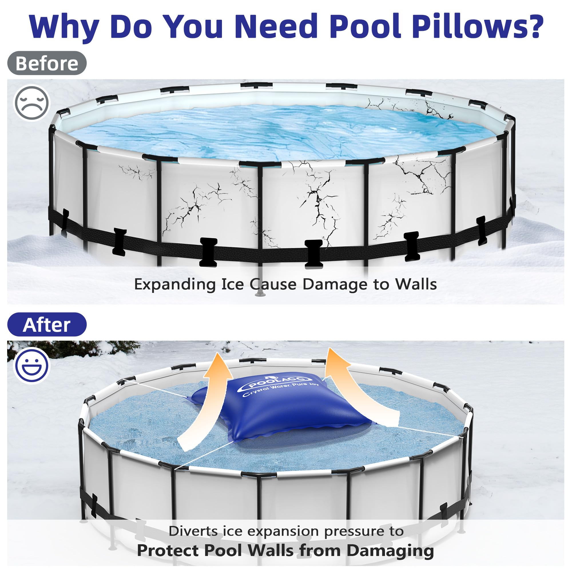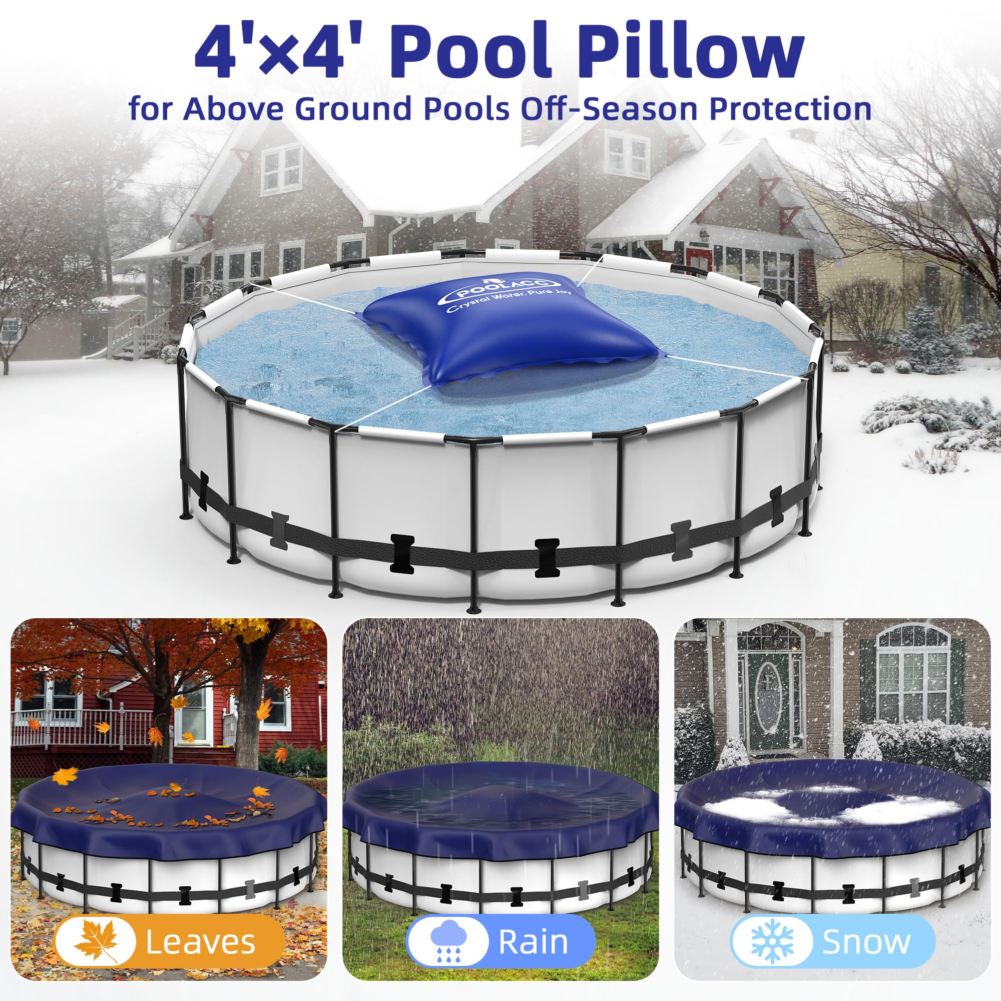 Prevents Ice Damage: Our pool pillow absorbs the destructive expansion pressure of freezing water, preventing cracks and structural damage to pool walls and liners. Pair with our pool cover for complete above-ground pool winter protection