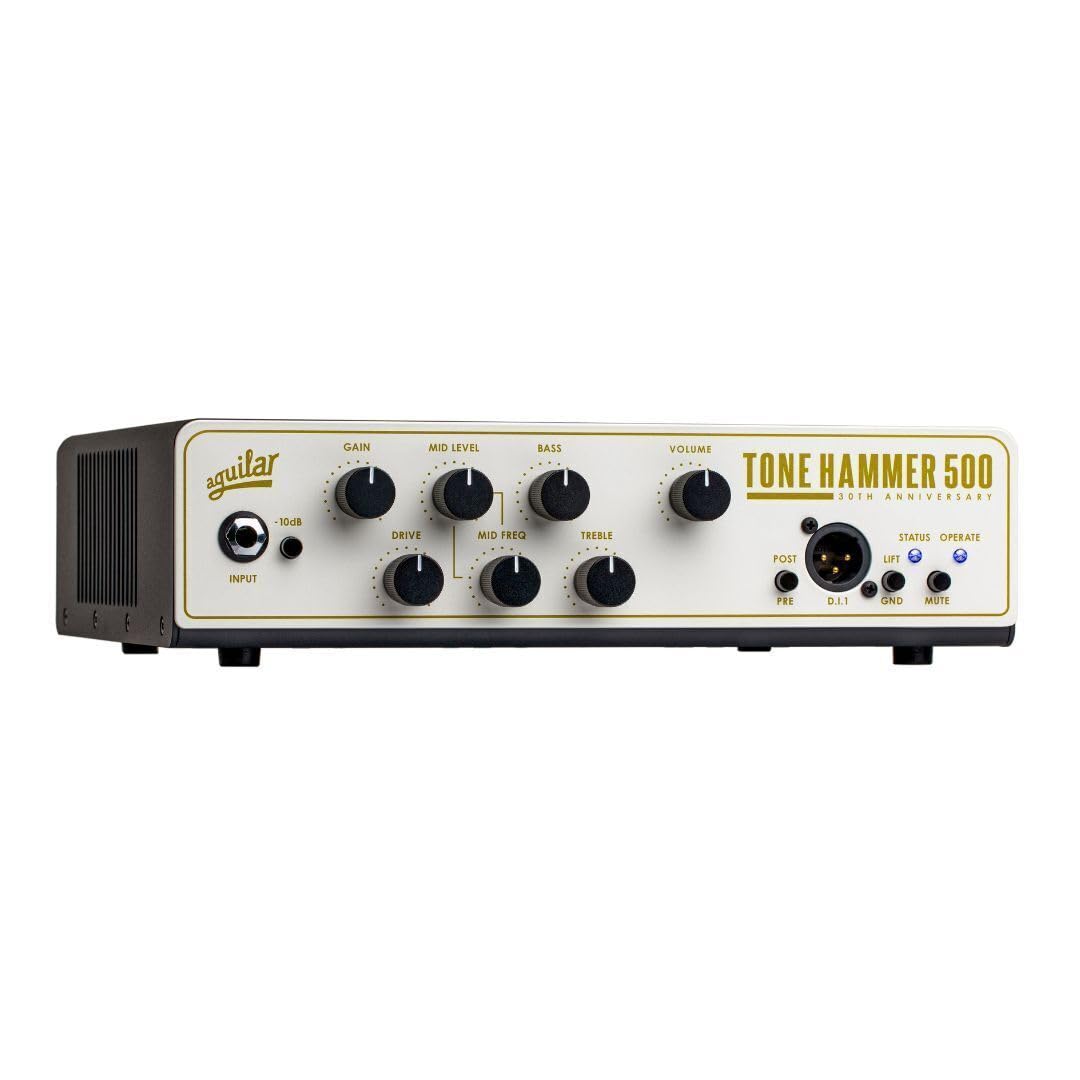 30th Anniversary Edition: The Aguilar Tone Hammer 500 Bass Amplifier 30th Anniversary Edition shines with a luxurious gold and pearl finish adorned with a commemorative logo