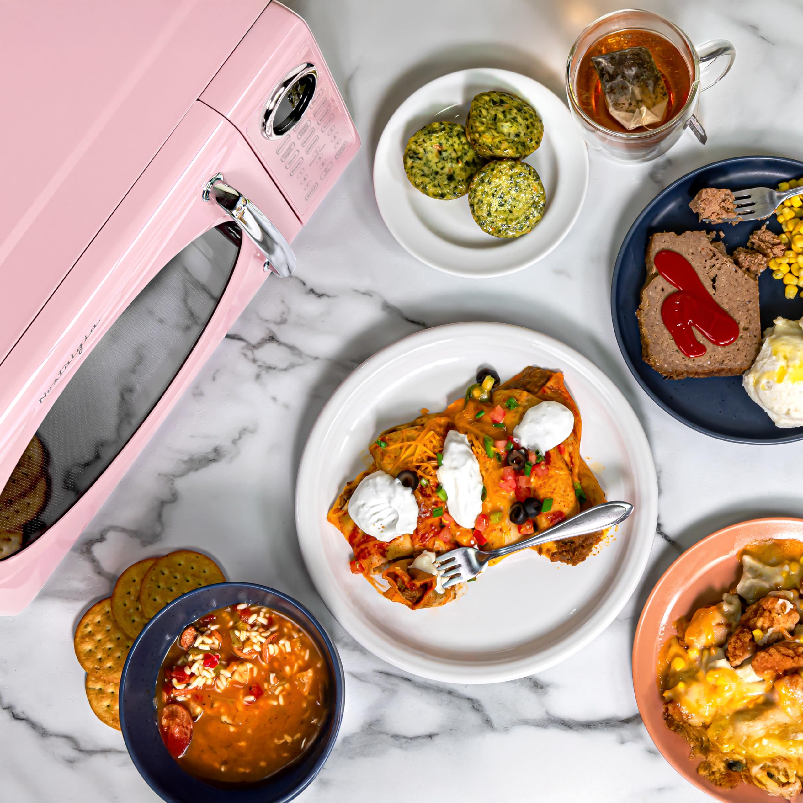 Bring classic style and modern convenience into your kitchen with the Nostalgia Retro Microwave Oven! This charming microwave, with its iconic retro design, will not only add a touch of style to your space but also revolutionize the way you cook and heat your favorite meals. Convenience is at your fingertips with the easy to operate button control panel, which allows you to cook by time, adjust power levels, select an auto-cook program, defrost, or quick start. Enjoy easily prepared a variety of meals, from late-night snacks to a family meal.
