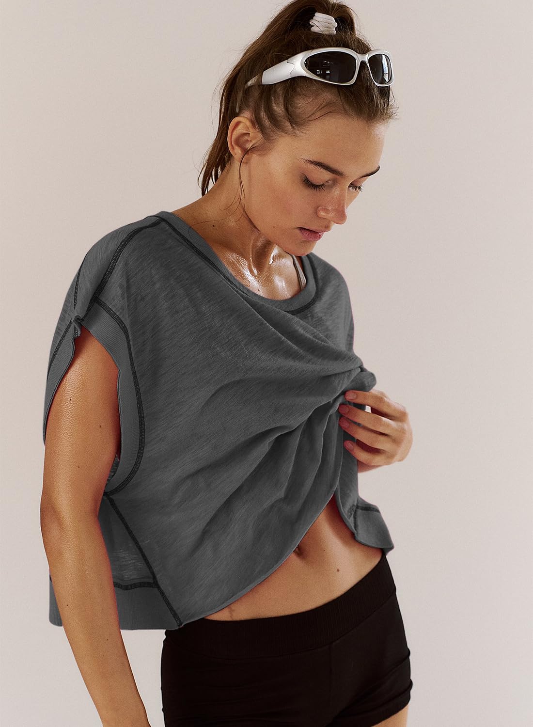 Features: Slight crop, shorter sides, wide neckline, open-cut back and ribbed wrist detail, the open back tops for women is fashionable and sexy, which increases the breathability, effectively dissipates body heat, and keeps cool and comfortable