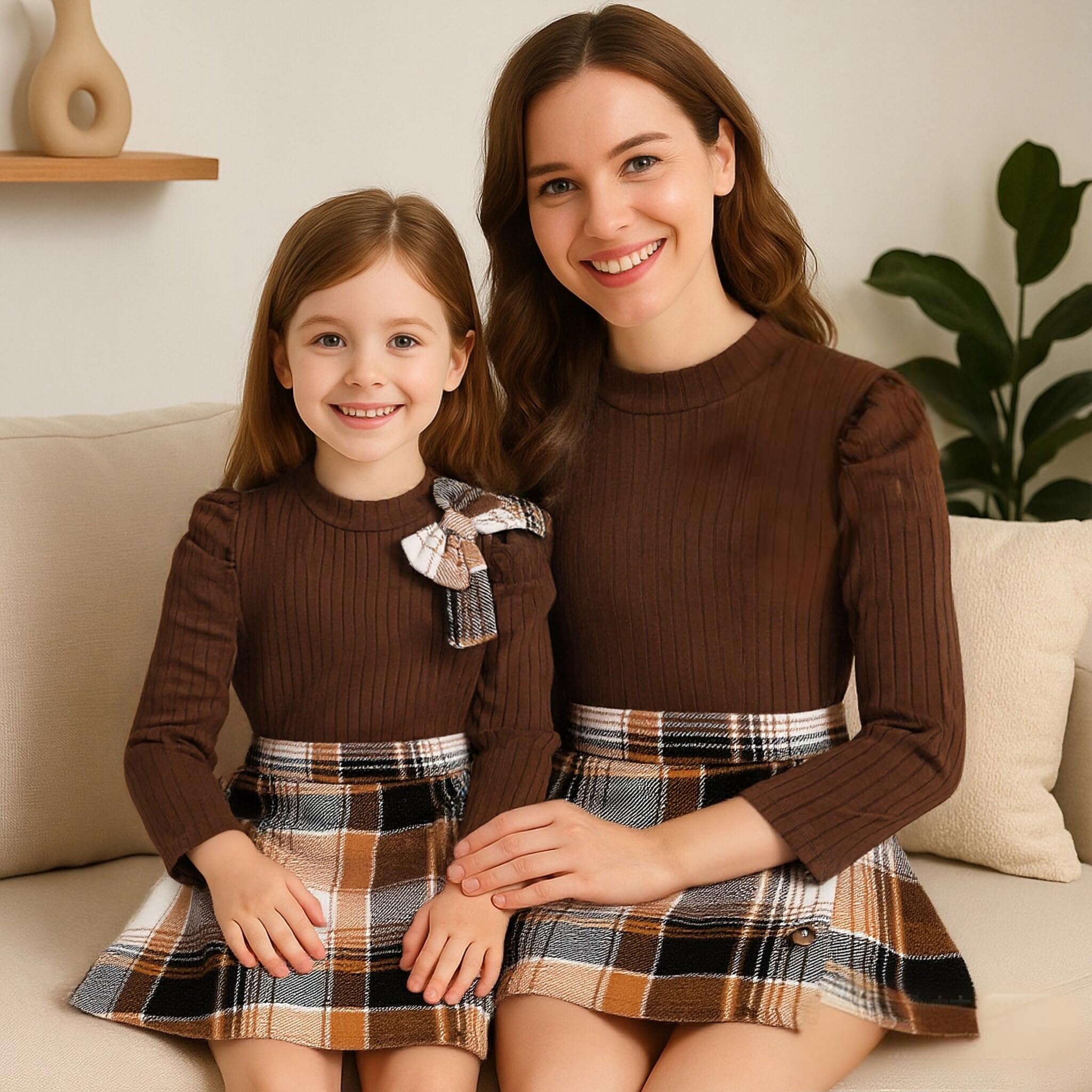 Package included: 1 x Long Sleeve Sweatshirt Tops +1 x Plaid Mini Skirt.