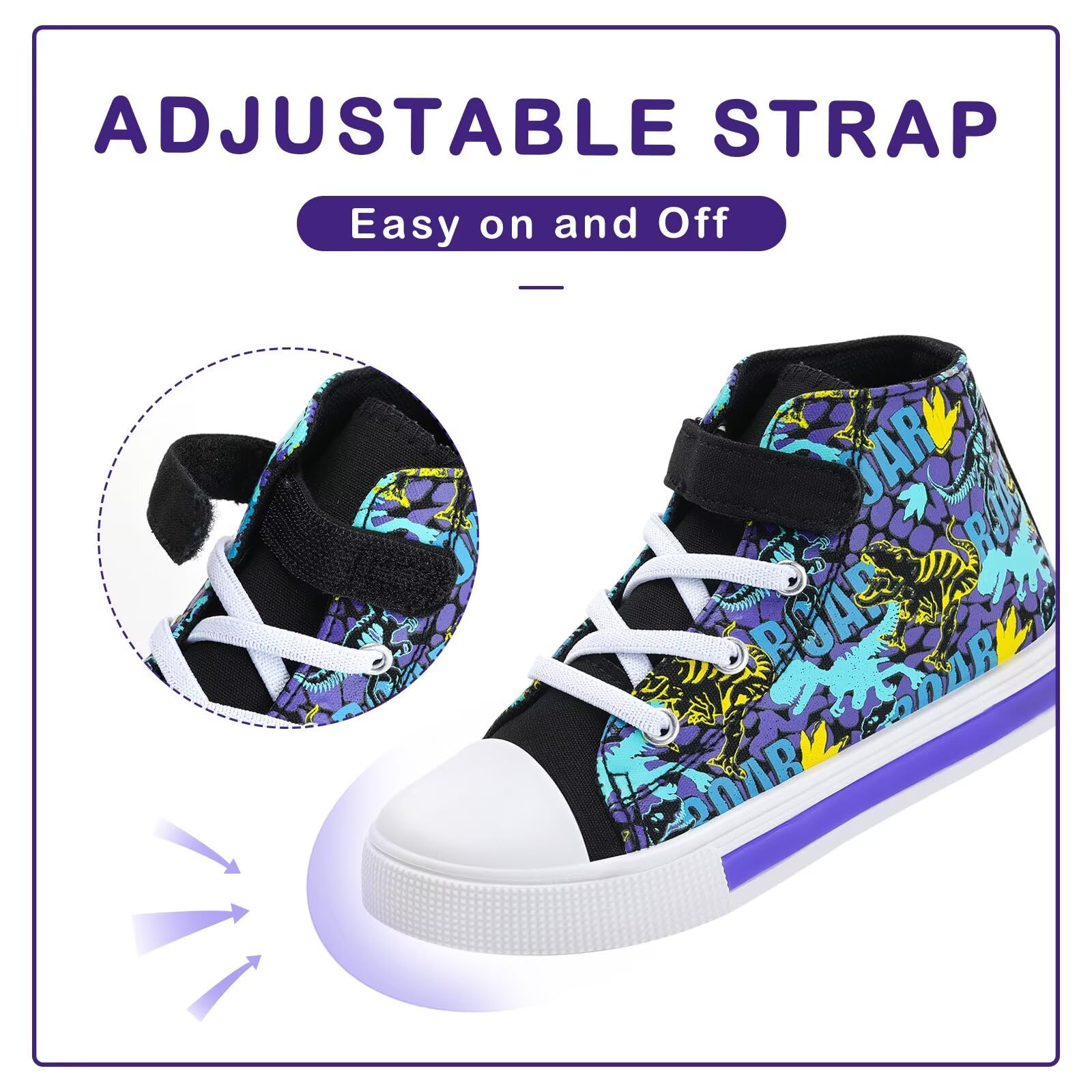 COMFORT AND DURABILITY: Crafted from breathable canvas material, these high-top shoes offer both comfort and durability. The lightweight fabric keeps your child's feet cool, making them perfect for walking, jogging, sports, and other outdoor activities