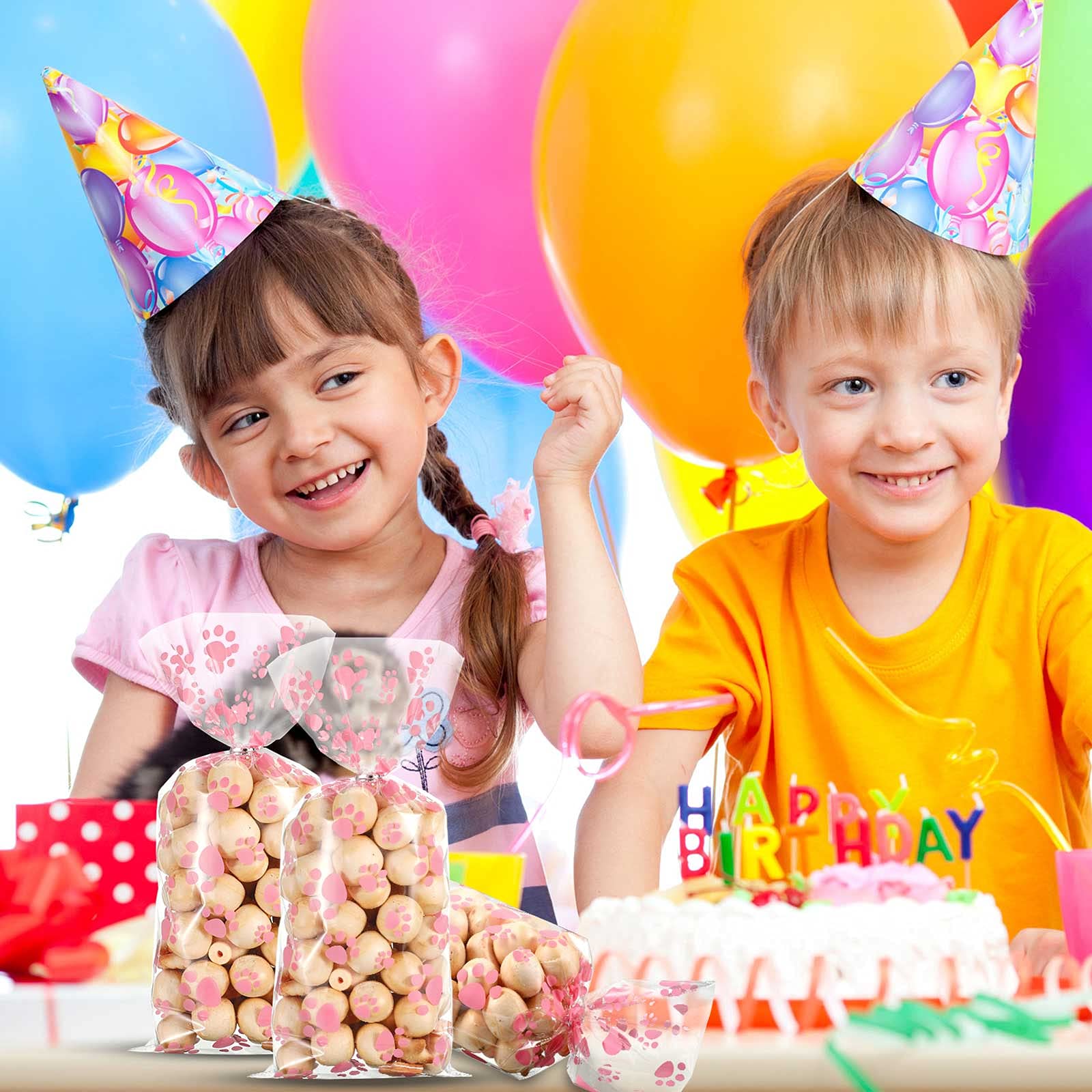 Design: these cellophane bags are designed with paw print patterns, which can add pet party atmosphere, catch both children and adults attention, cater to the interests and taste of children