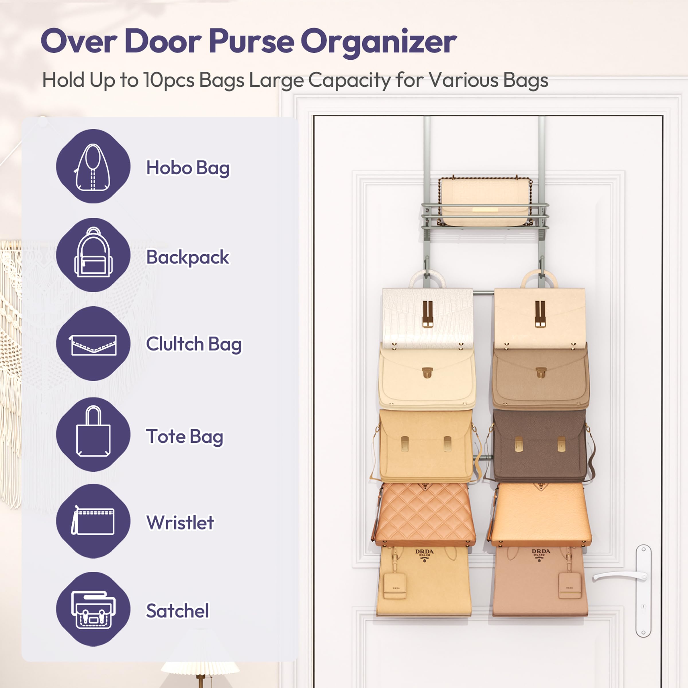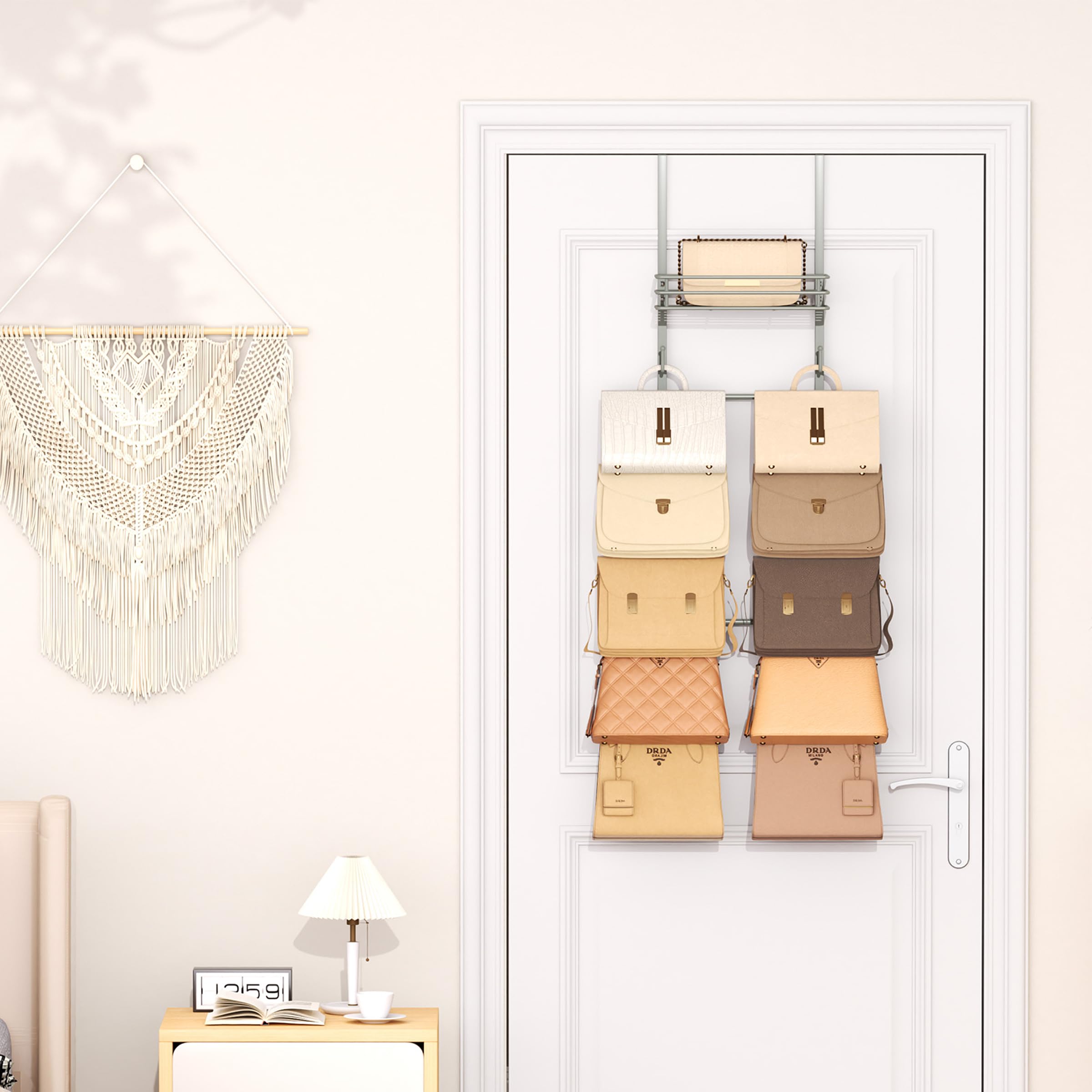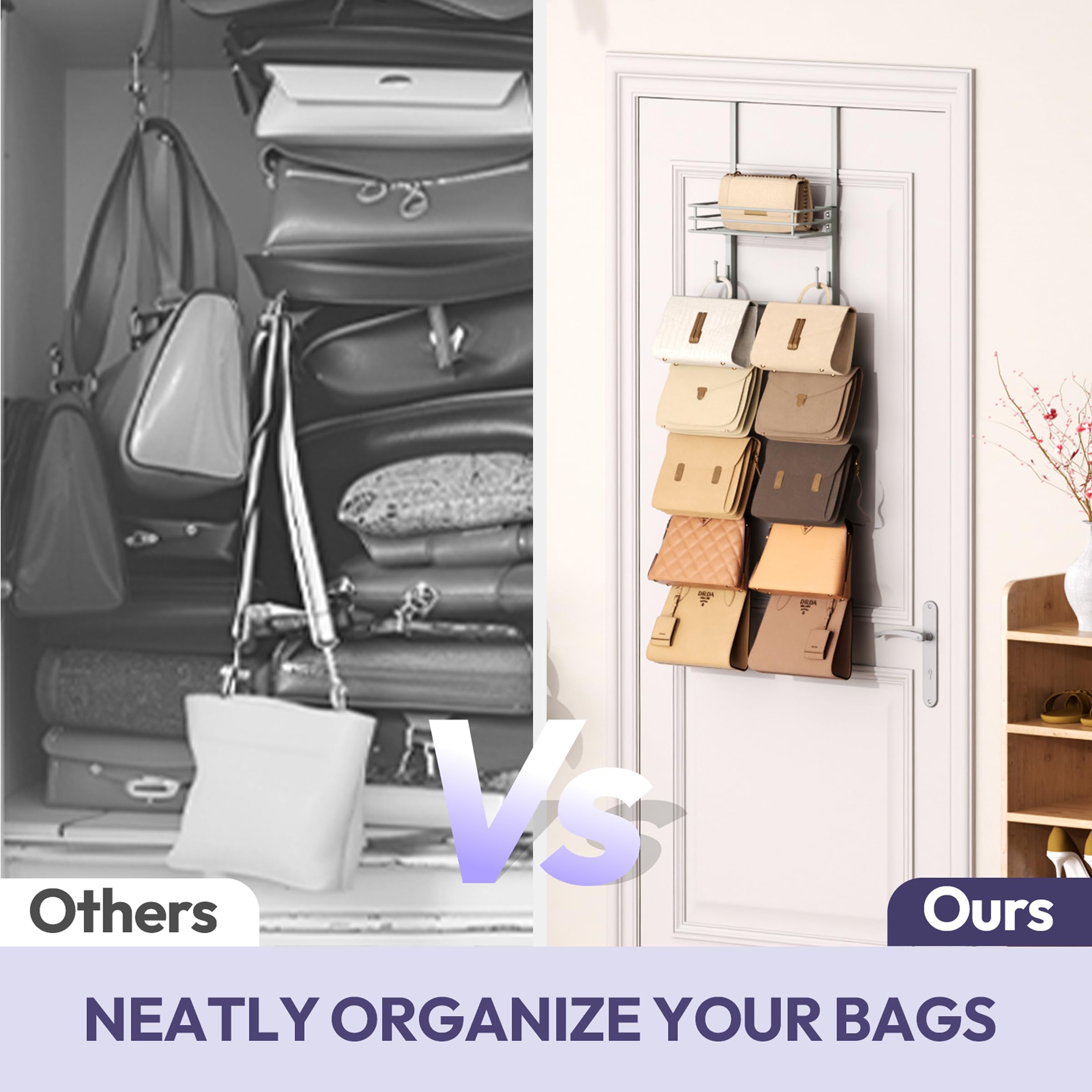 [Secure and Stable]: The over the door handbag organizer includes anti-sway adhesive pads prevents swinging or sliding. Use it as a purse holder for closet or a dependable vertical rackβit keeps everything in place, whether holding a small purse organizer or larger totes