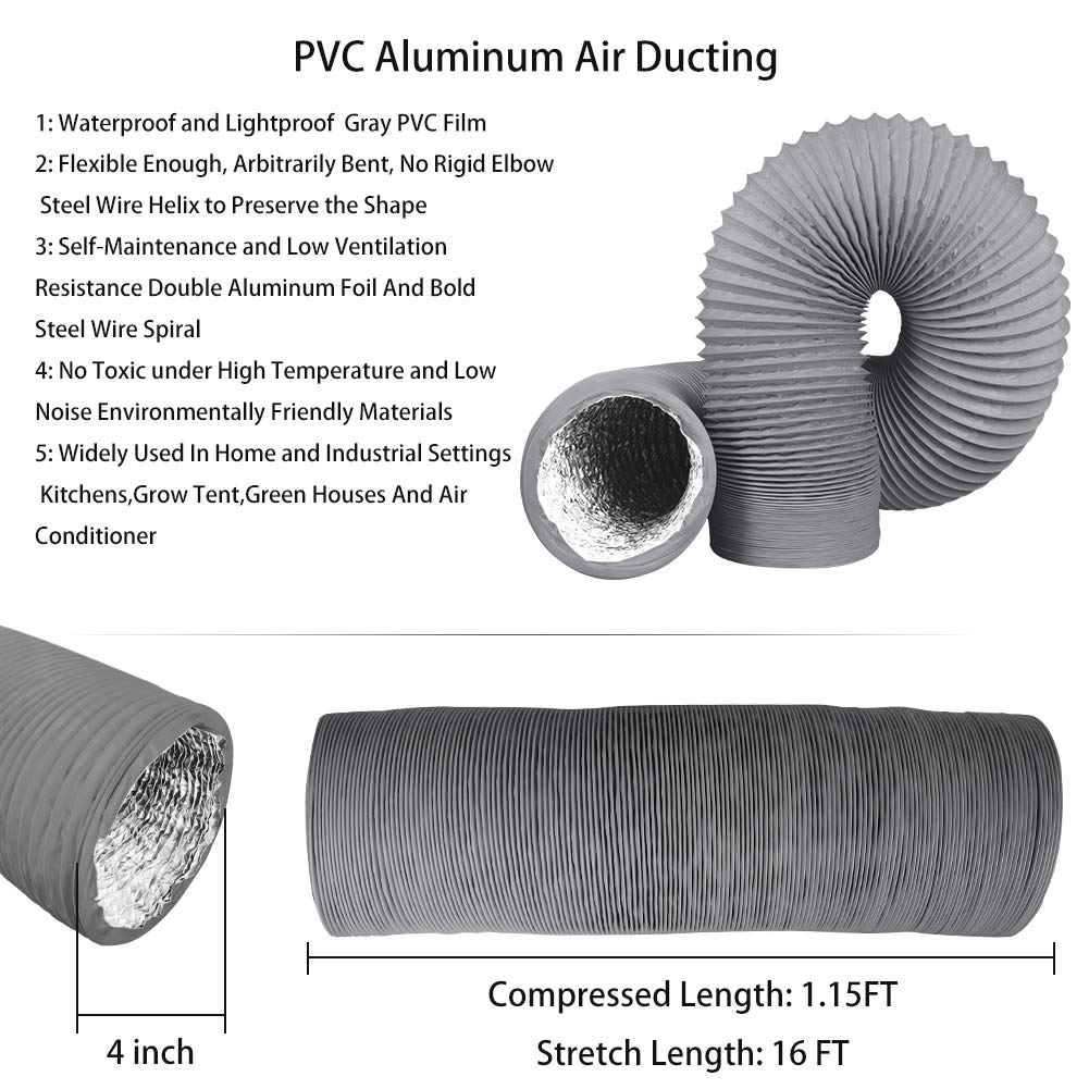 WIDELY USED: The flexible dryer vent hose suits HVAC system. It will move and deliver air in Kitchens (cooking exhaust), Green Houses and Grow Rooms (Air Circulation, Intake, Exhaust and Light Fixture Cooling), Bathrooms (Smell and Moisture Exhaust), Dryer Rooms, Grow Tents and other applications etc.