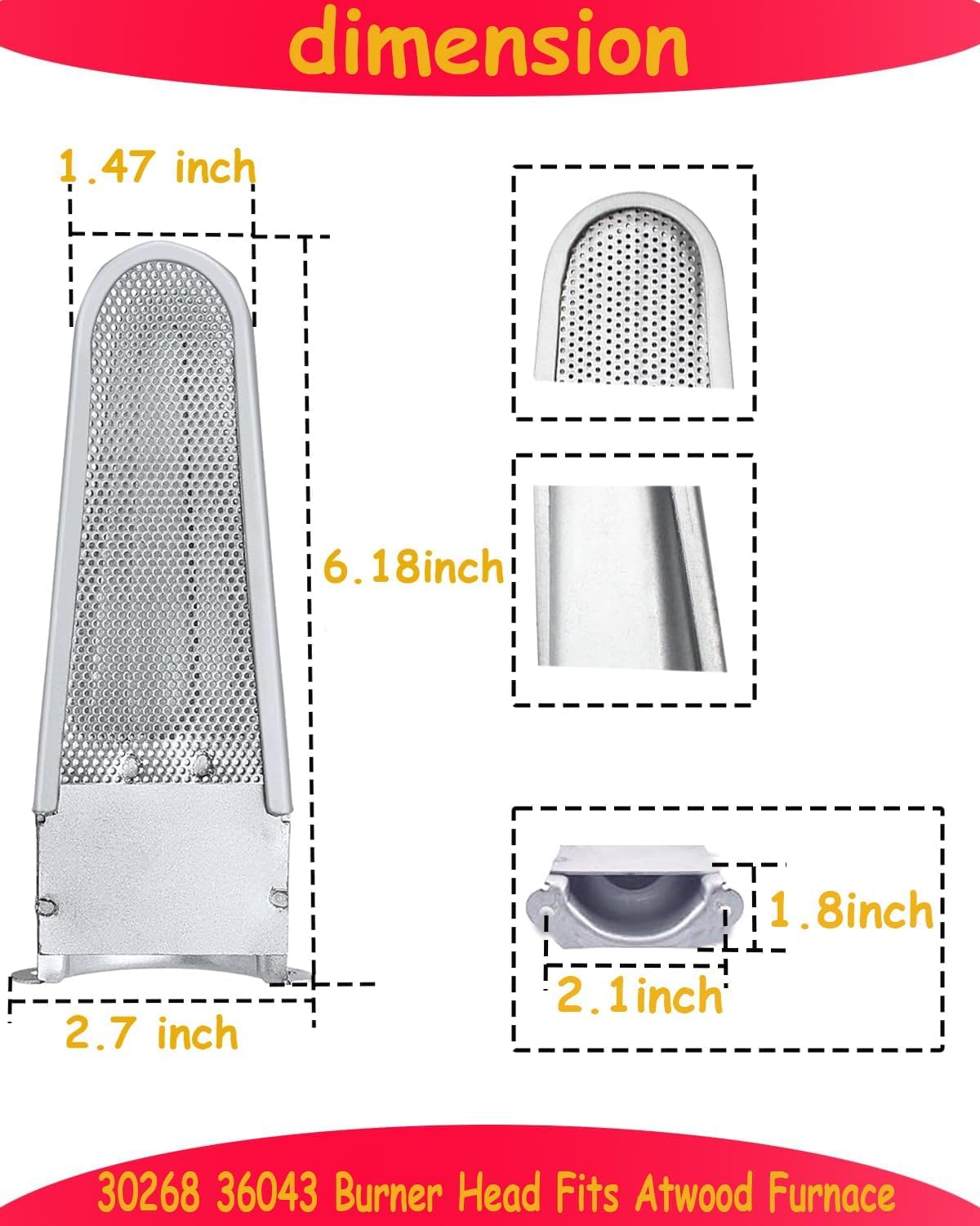 Have Heat Again in the Chilly Weather Camping: The RV furnace burner head for LP gas furnaces construct of durable metal materials to fix your rusted/ plugged camper furnace heater and prolong lifespan. Improve heating unit efficiency and reduce propane use by replacing with the new camper burner head.