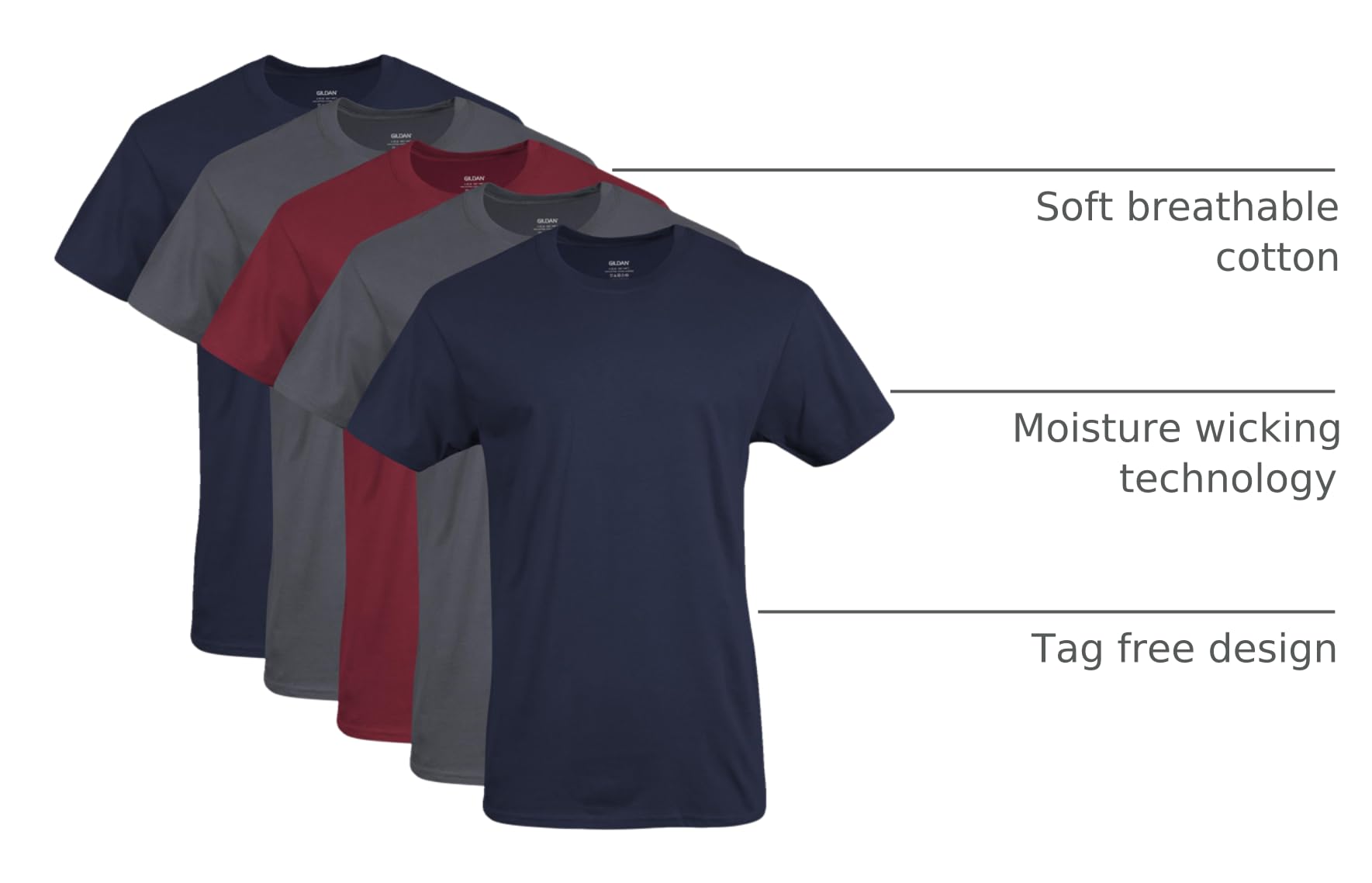 Description Gildan Cotton Crew Neck T-Shirts are anything but basic. Crafted with soft, breathable cotton and moisture wicking technology to keep you cool and comfortable no matter what's on the agenda. Perfect for layering or lounging - you can thank us later.