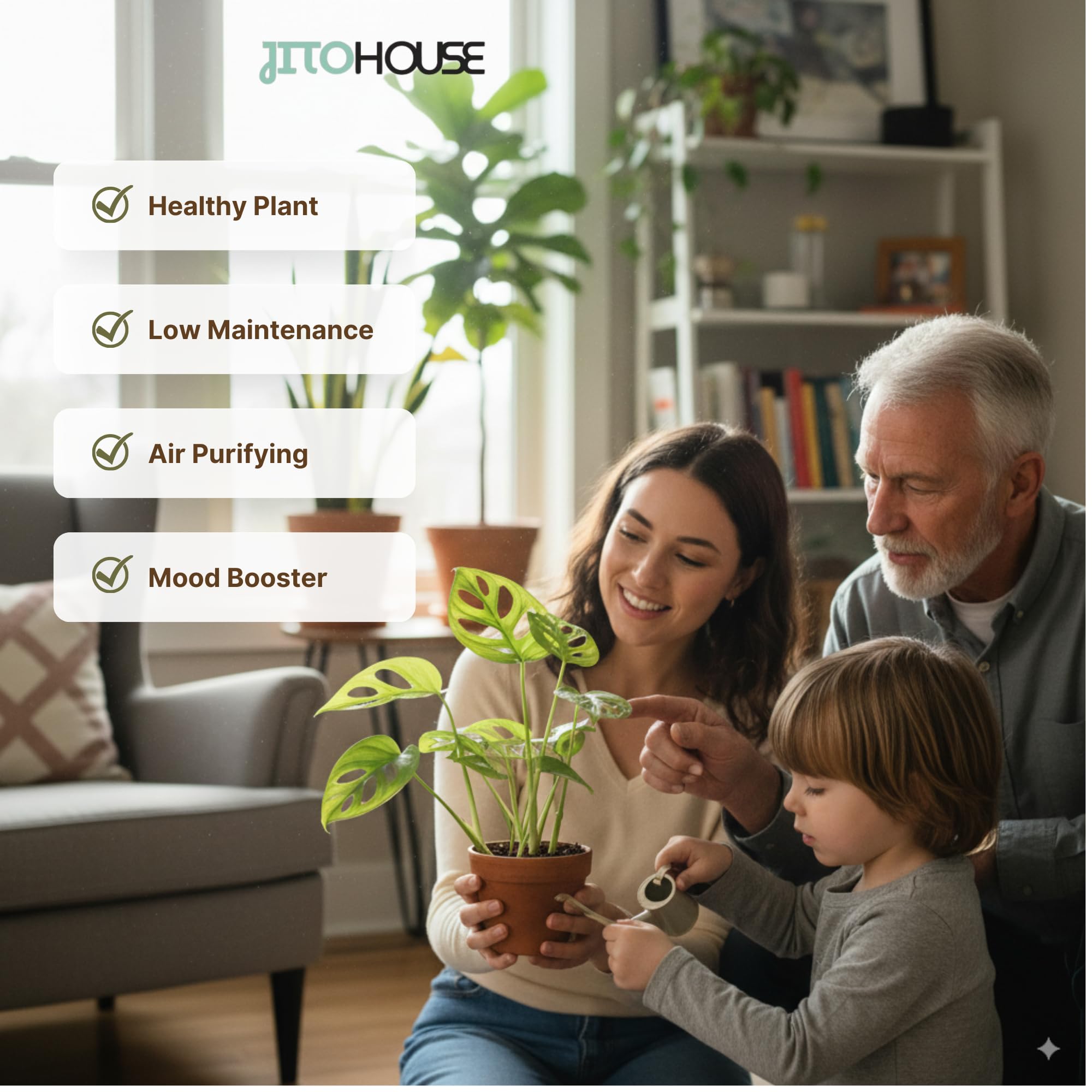 HEALTH AND WELLNESS BENEFITS: Incorporating houseplants like the Monstera Adansonii into your living space offers numerous health advantages, including stress reduction, enhanced mood, and improved air quality. Its presence contributes to a calmer, more balanced atmosphere in your home.