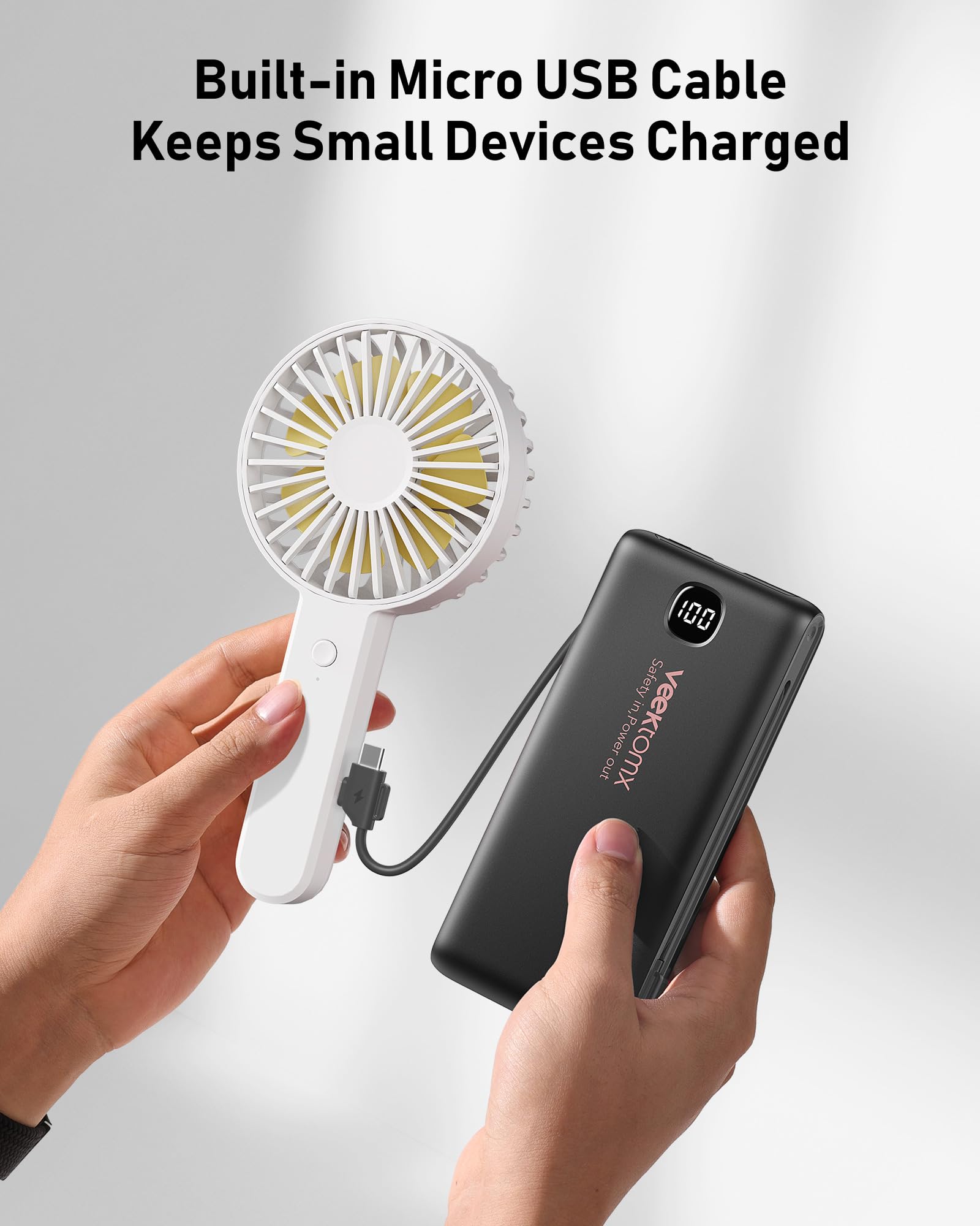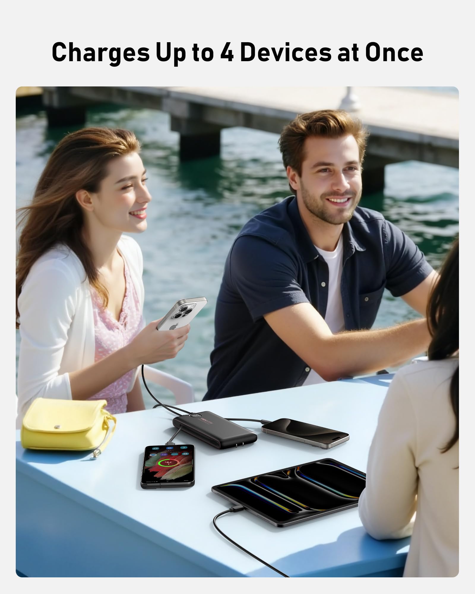[Phone Battery Bank for Multiple Devices] This portable charger power bank has 5 output ports, including 2 built in cables and additional USB C and USB A outputs. It supports charging up to 4 devices simultaneously. Its portable and user-friendly design allows you to charge your devices anytime, anywhere.