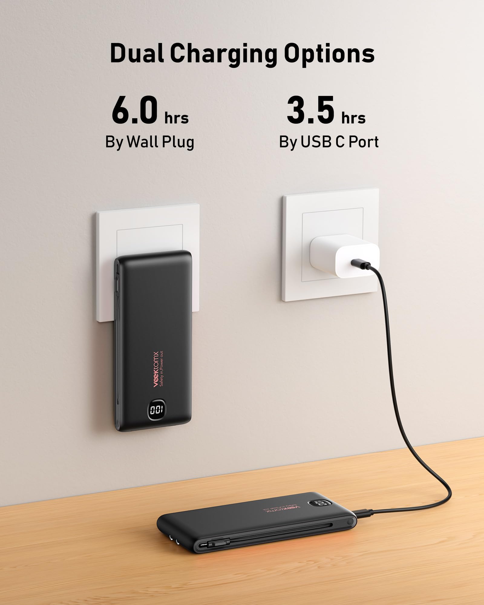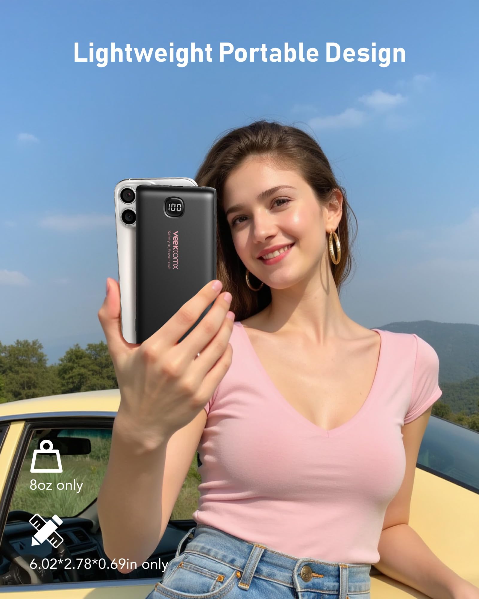 [Small Portable Phone Charger for Travel] This 10000mAh slim power bank measures just 6.02 x 2.78 x 0.69 inches and weighs 8 ounces, equivalent to the weight of an iPhone 16. It is a travel essential that is easy to carry and one of your best must-haves for international travel.