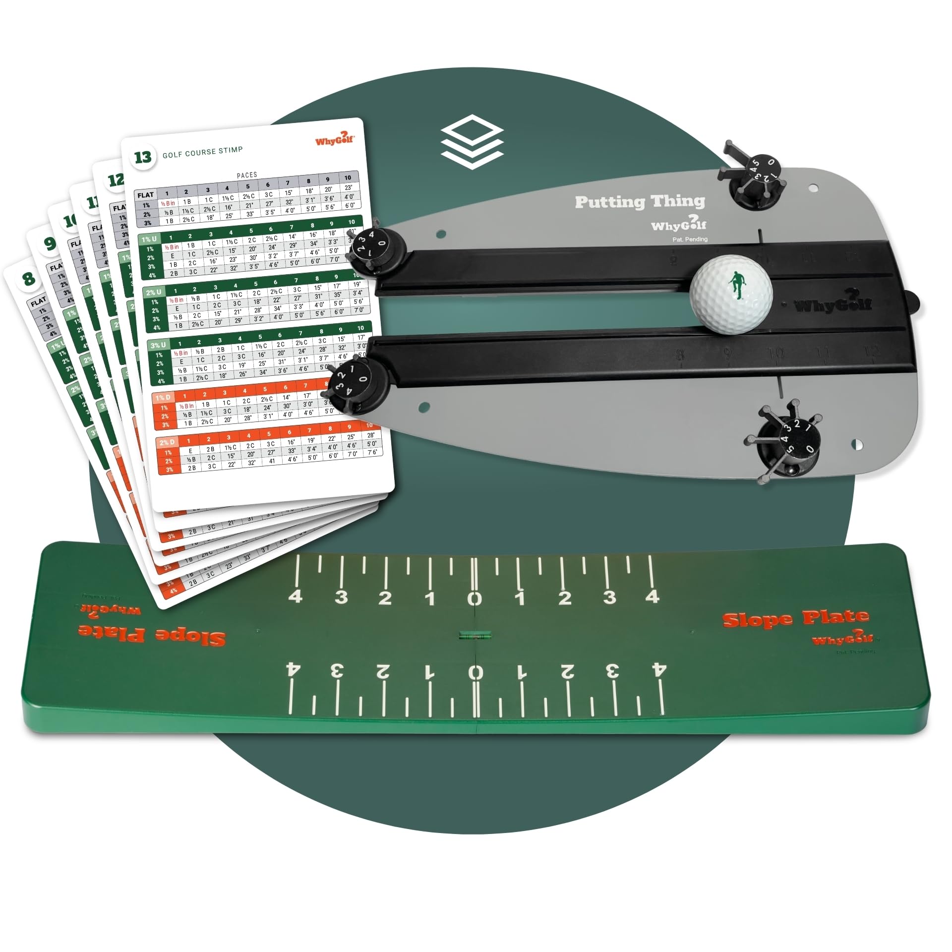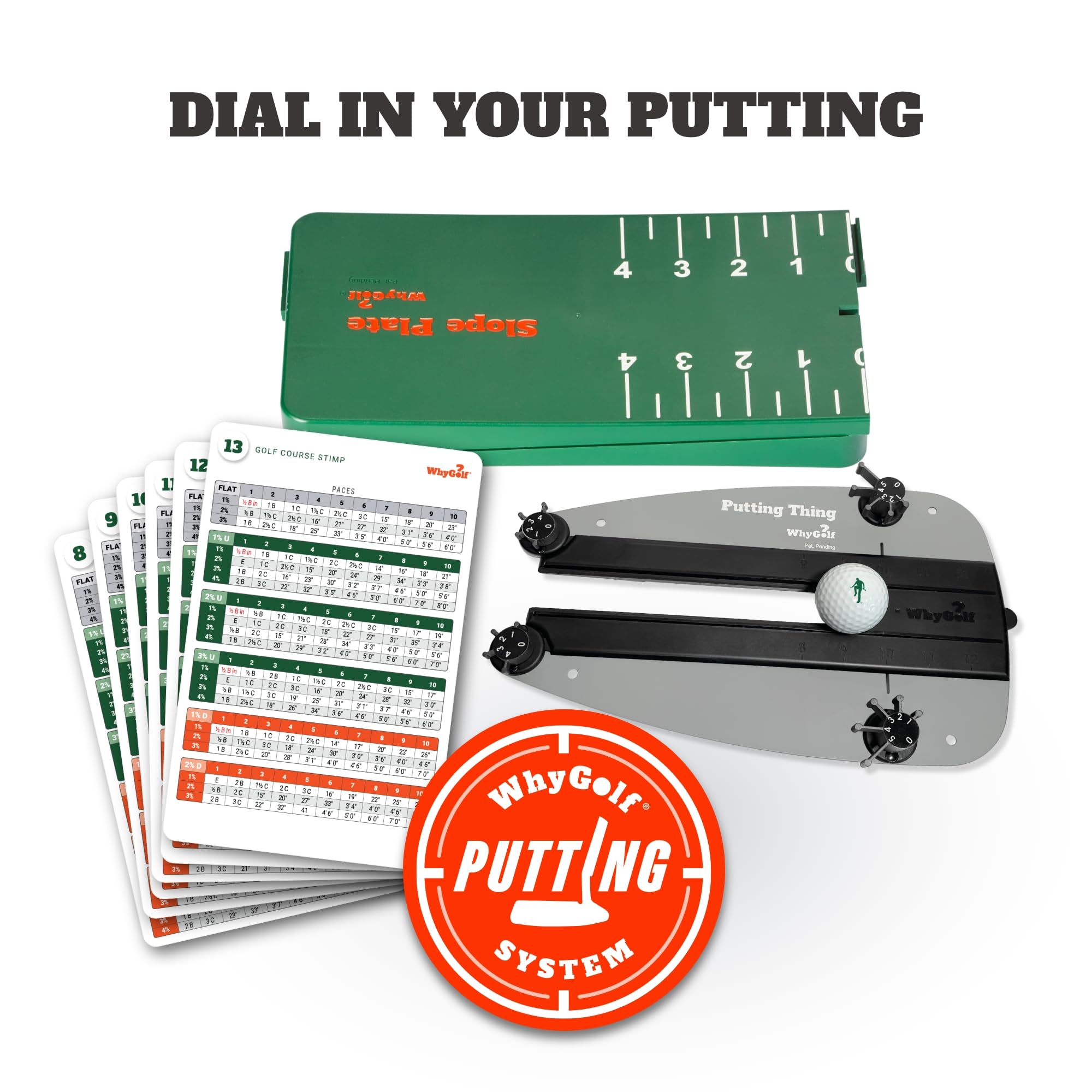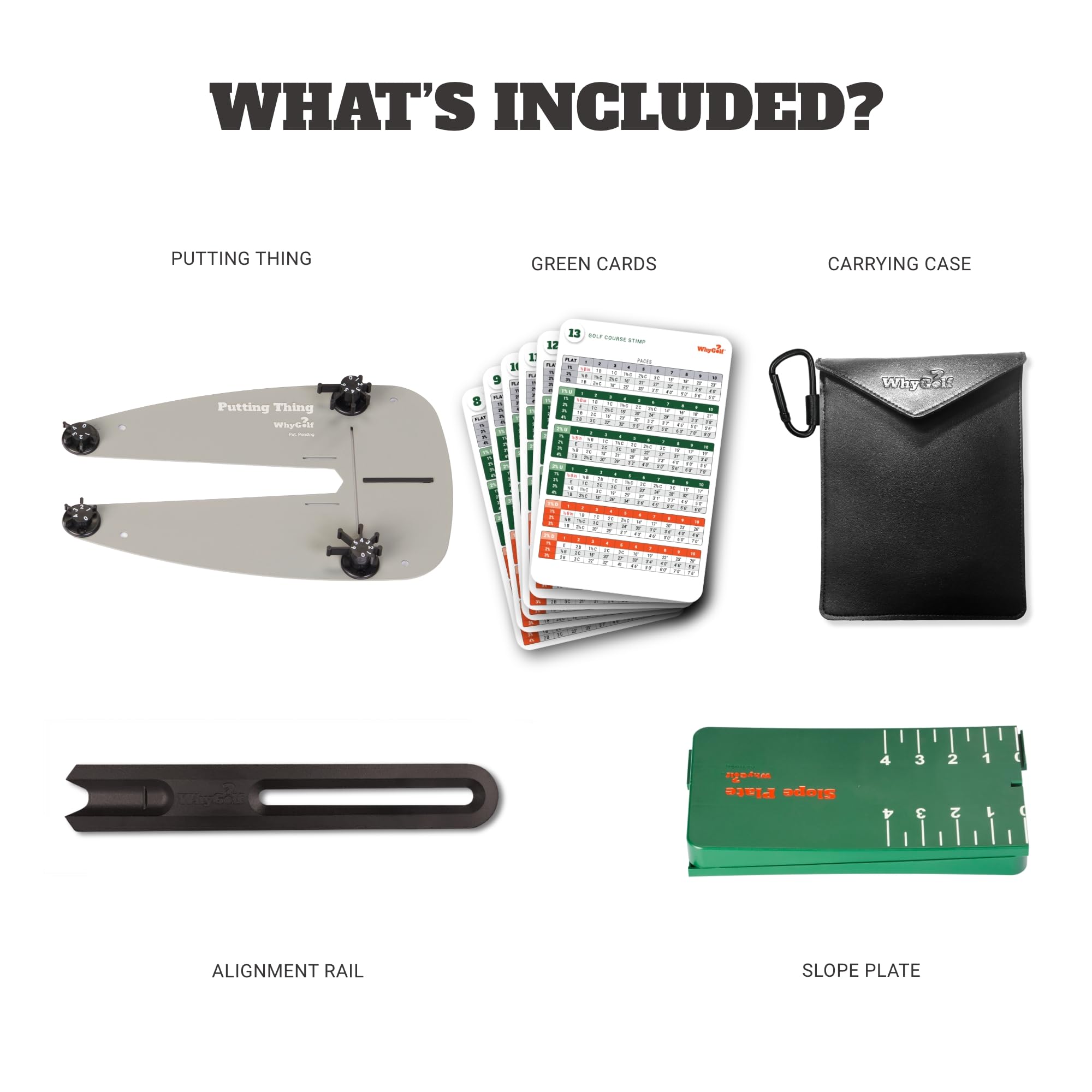 Comprehensive Putting Golf Training System: Get the complete putting trainer solution through this one kit. No need to purchase separately. Get in one package WhyGolfβs Ultimate Putting Training Aids: WhyGolf Putting Thing, WhyGolf Slope Plate, & WhyGolf Green Cards.