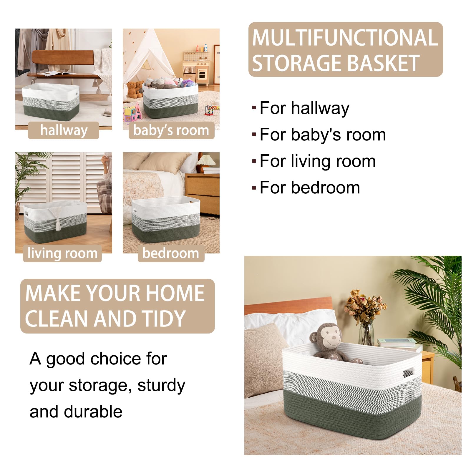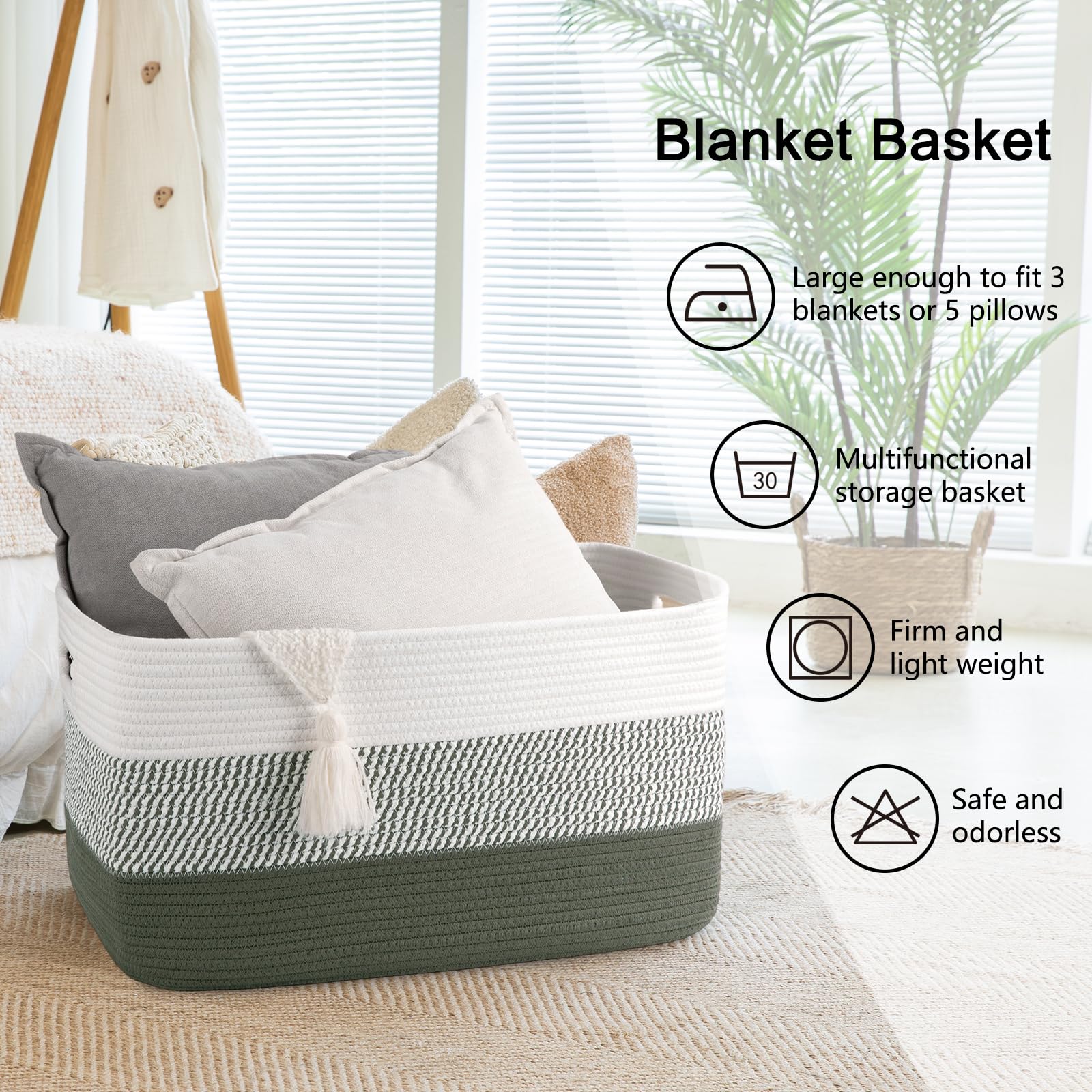 Decorative Blanket Storage for Living Room:This rectangular blanket basket is more stable and easier to restore its sahpe after you receive the package. The 22ββ x 17ββ x 12ββ large storage basket can also used to store blankets, pillows, cushions, toys, clothes and towels