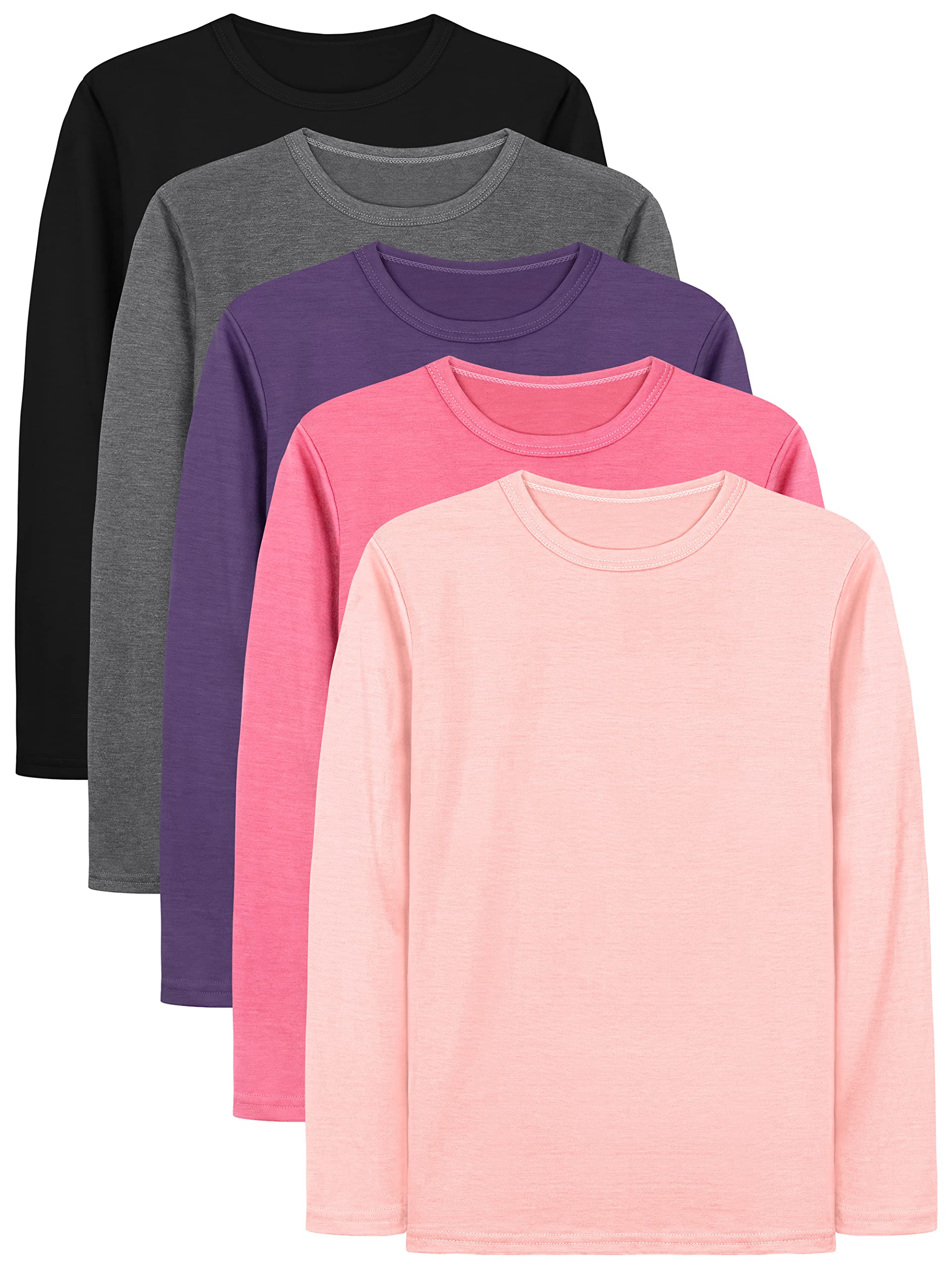 Amazon Essentials Girls' Leggings, Pack of 5, Black/Grey Heather/Light Pink/Peach/Red, Medium