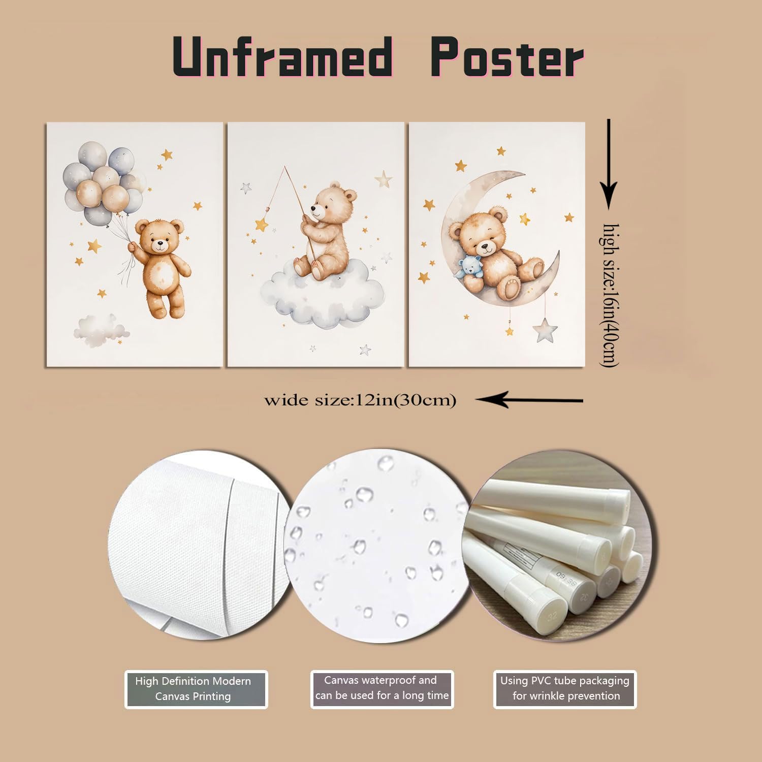 Customer service : We are committed to providing customers with high-quality products and services. If you have any questions about the Cute Cartoon Baby Teddy Bear Wall Decor Pictures you received, please feel free to contact us