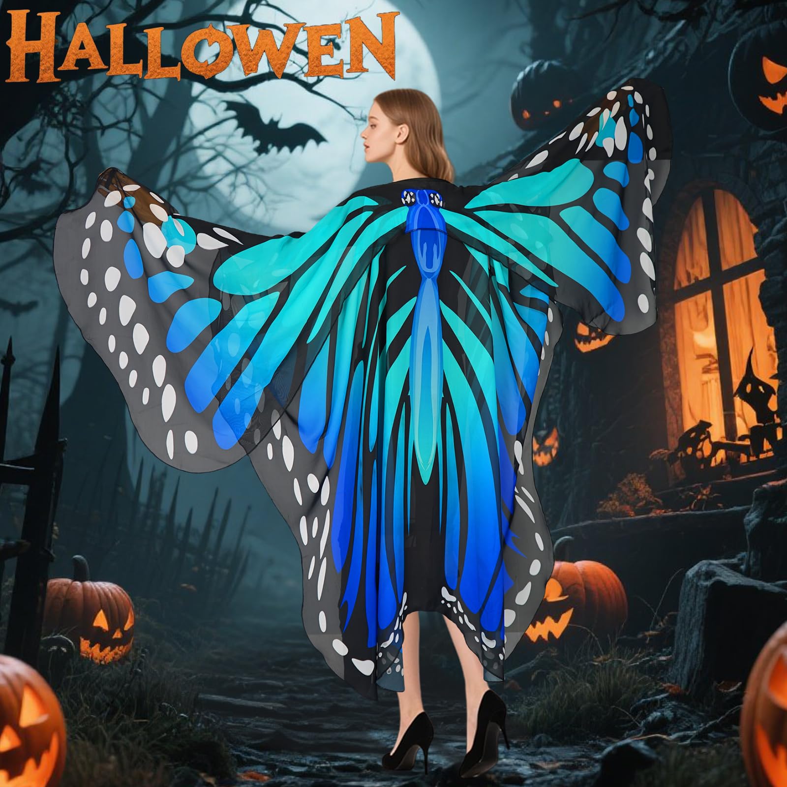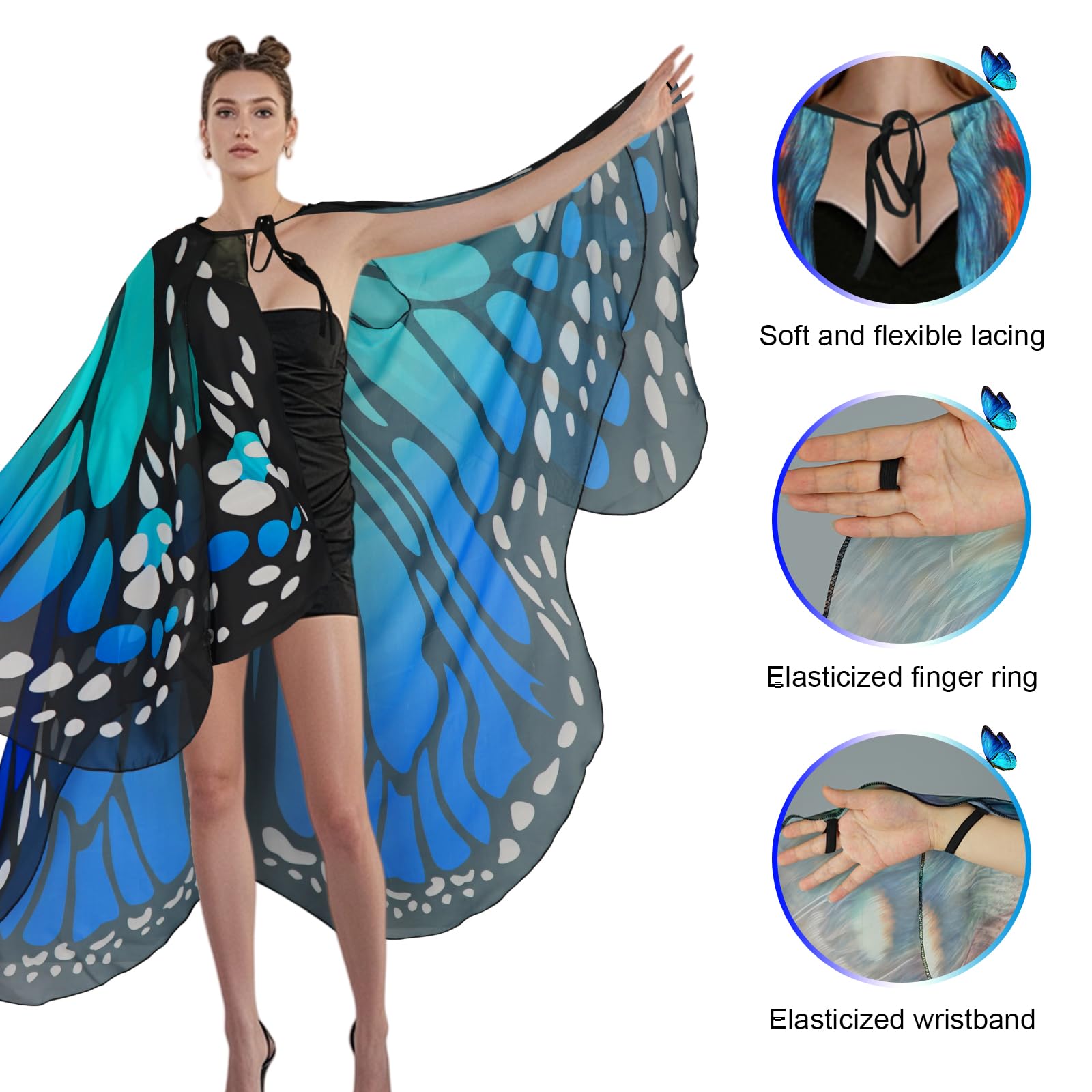 π¦Elegant Butterfly/Mothman Costume-The adult women's butterfly/moth wings cape is designed with a double-layer styling in a soft and airy fabric,which delivers a lifelike fluttering effect.The womens halloween butterfly costumes add adjustable ties at the neck,the bottom wings and body are like a cape/vest with arm holes,which can then be tied in the front or left untied .Both layers of wings have elasticized finger loops at the top to attach fingers,perfect for creative crossdressing.