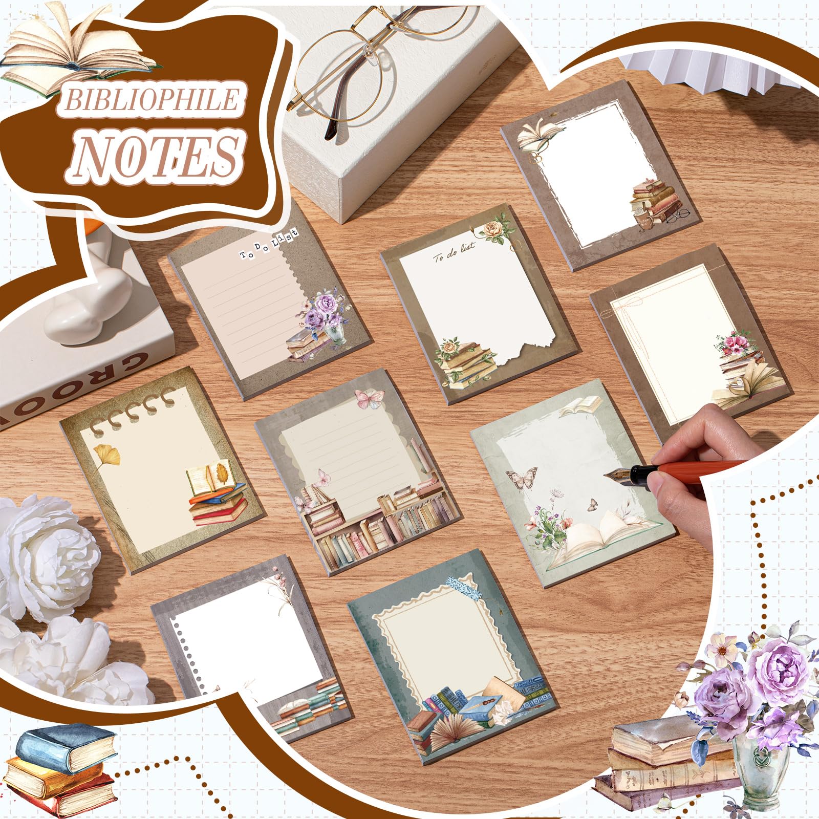 Book Lover Theme Patterns: these book lover sticky note pads adopt aesthetic book lover design, exquisite and beautiful, so that you can feel the pleasure brought by book, bringing joy to your daily use