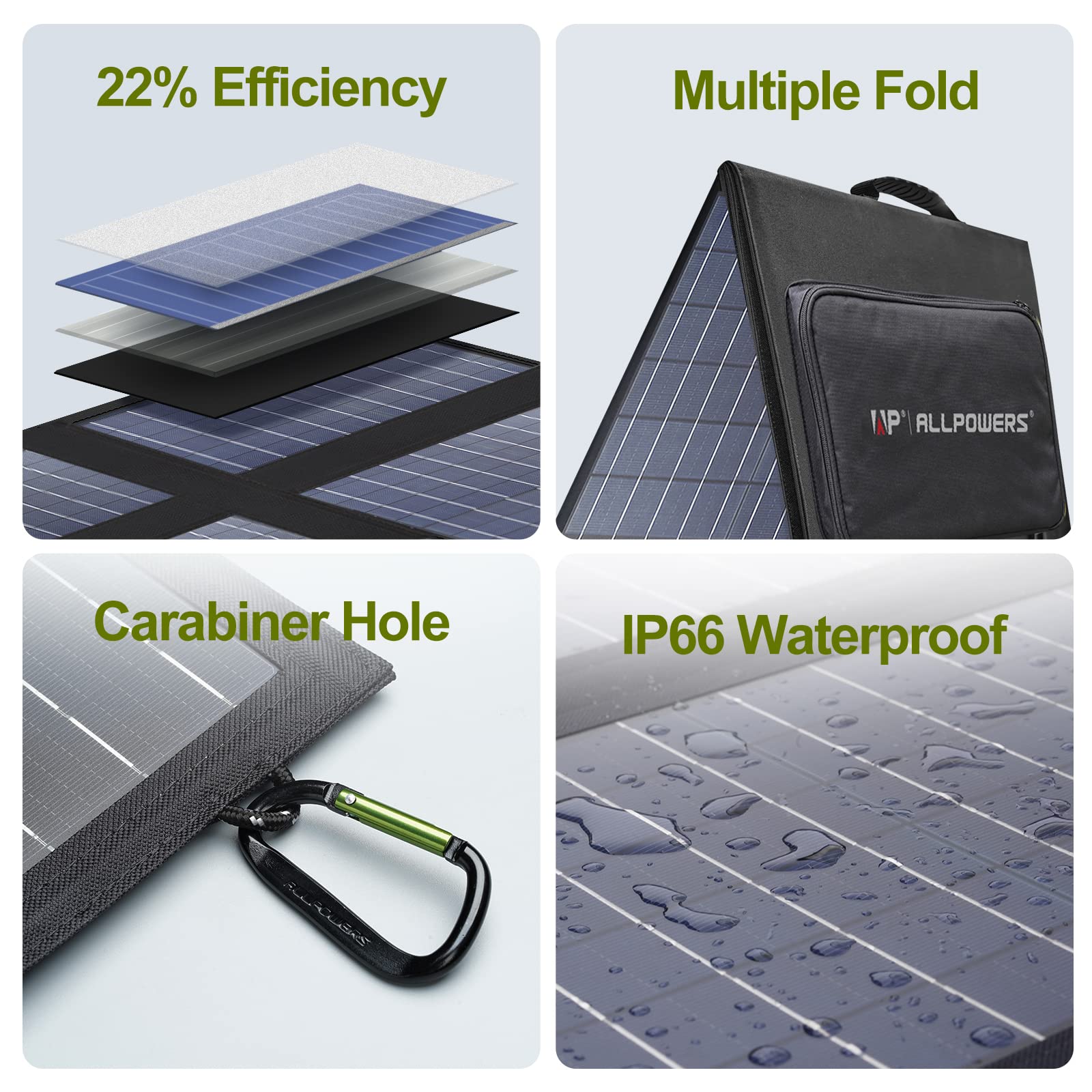 【Ultra-Lightweight & Compact】 Extremely portable at only 2.4kg (5.29lbs) and folding to a compact 38x25.5x7cm. This small solar panel is your perfect lightweight companion for backpacking, hiking, and any camping trip where every ounce matters.
