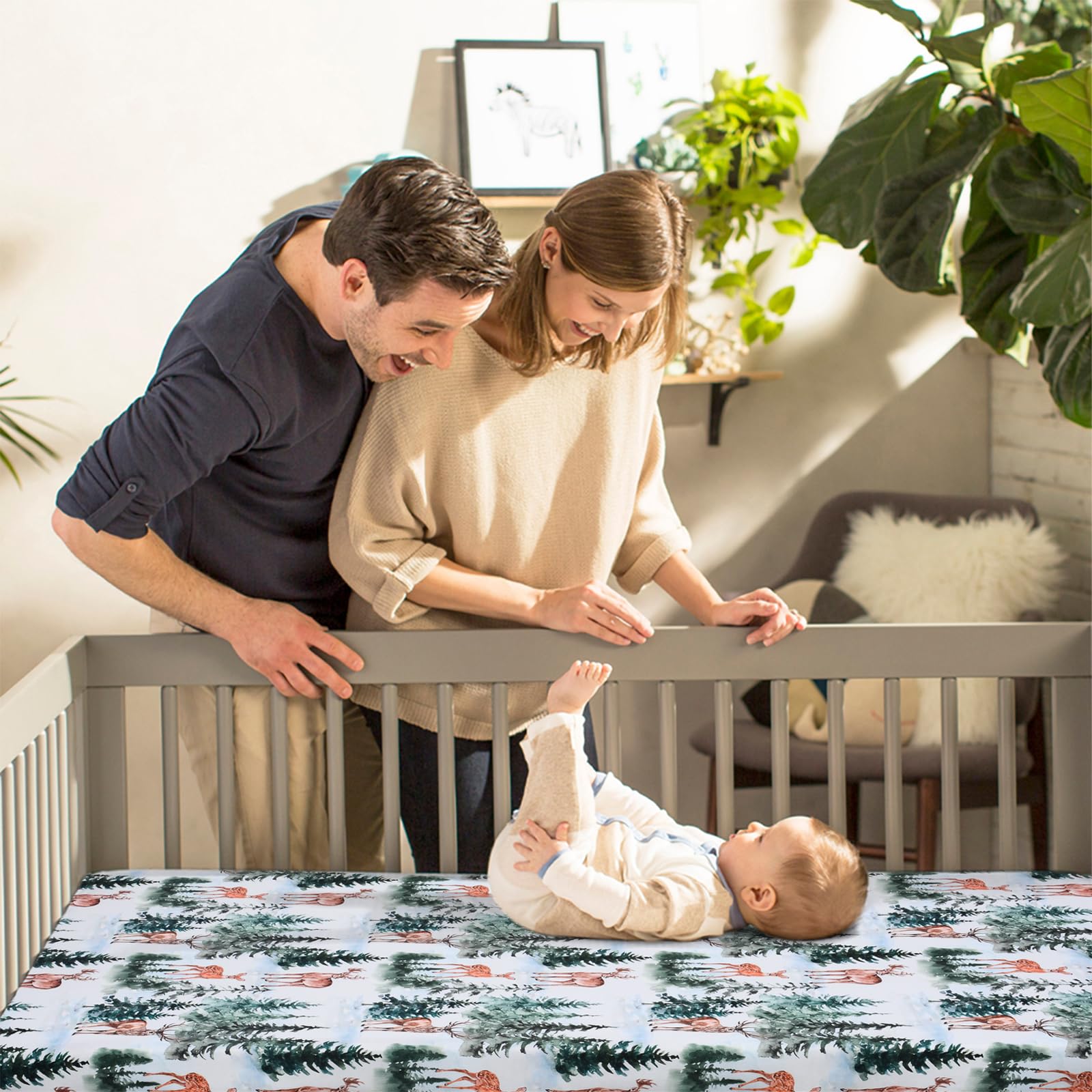 ใEasy Careใ: Simply toss this tree crib sheet into the washing machine on gentle cycle and they'll be as good as new. Please be careful not to let this product direct contact with undiluted detergent to avoid local fading. Try to avoid sun exposure, can dry it on the reverse side. The high-quality fabric ensures that standard crib sheet retains its shape, color, and softness even after multiple washes, making it a practical and long-lasting investment.