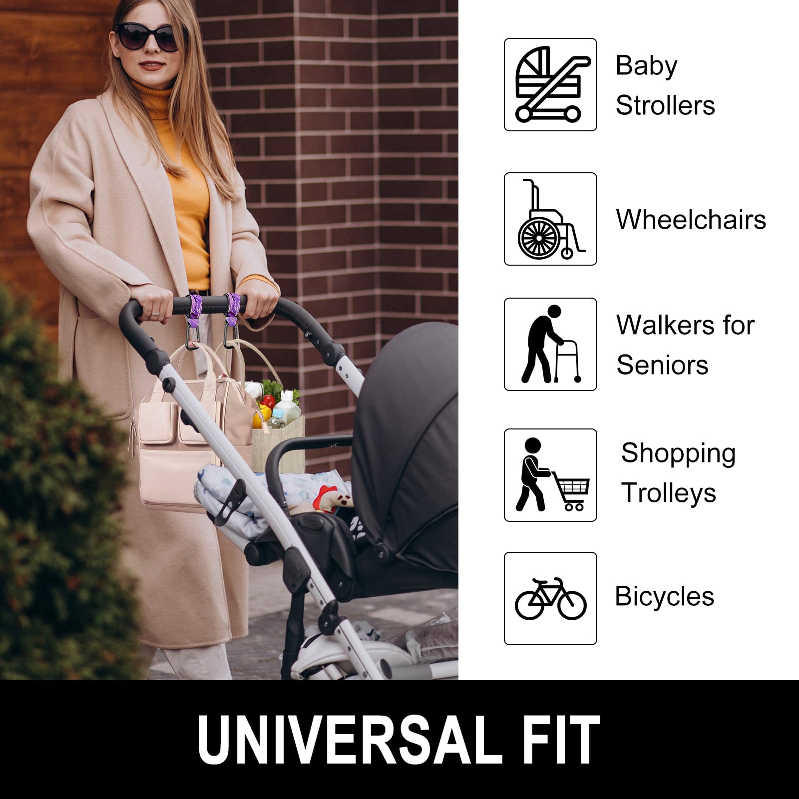 Widely Used: The stroller hook is perfect for wheelchairs, cars, bicycles, walking frames, shopping trolleys, dog leads, and more. Compact and portable size, easy to store in bag or keep hanging on stroller. Widely used in multiple scenarios