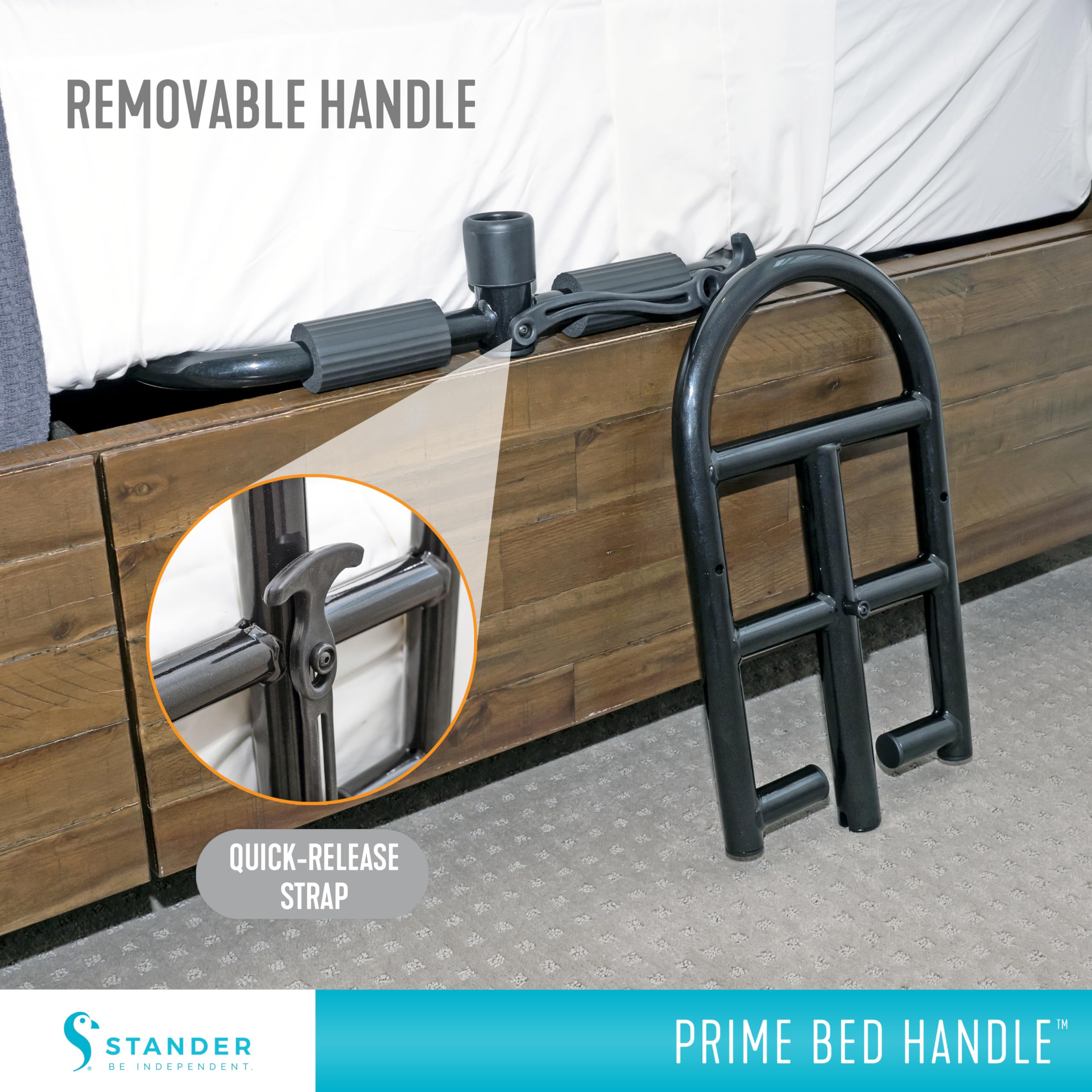 Removable Bedrail: Caregivers can easily tend to their loved ones in a hassle-free manner thanks to the detachable handle and quick-release strap; easily install by sliding under the mattress and securing with the safety strap for peace of mind