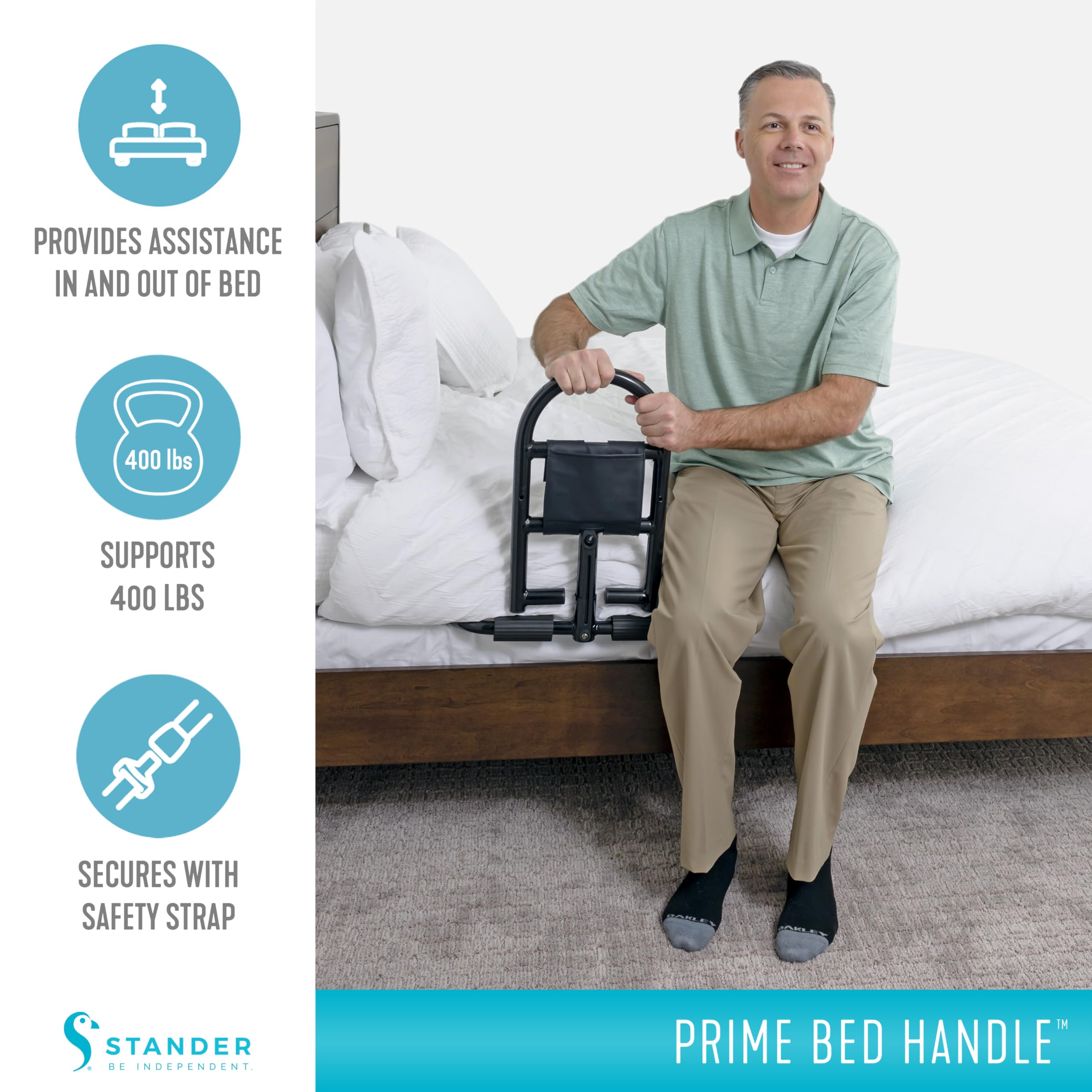 Prevent Falls: Feel relaxed when getting in or out of bed with the Prime Bed Handle; this bed grab rail offers leverage and balance, so you can maneuver gently without fear; rest easy knowing this rail offers reliable support up to 400 pounds
