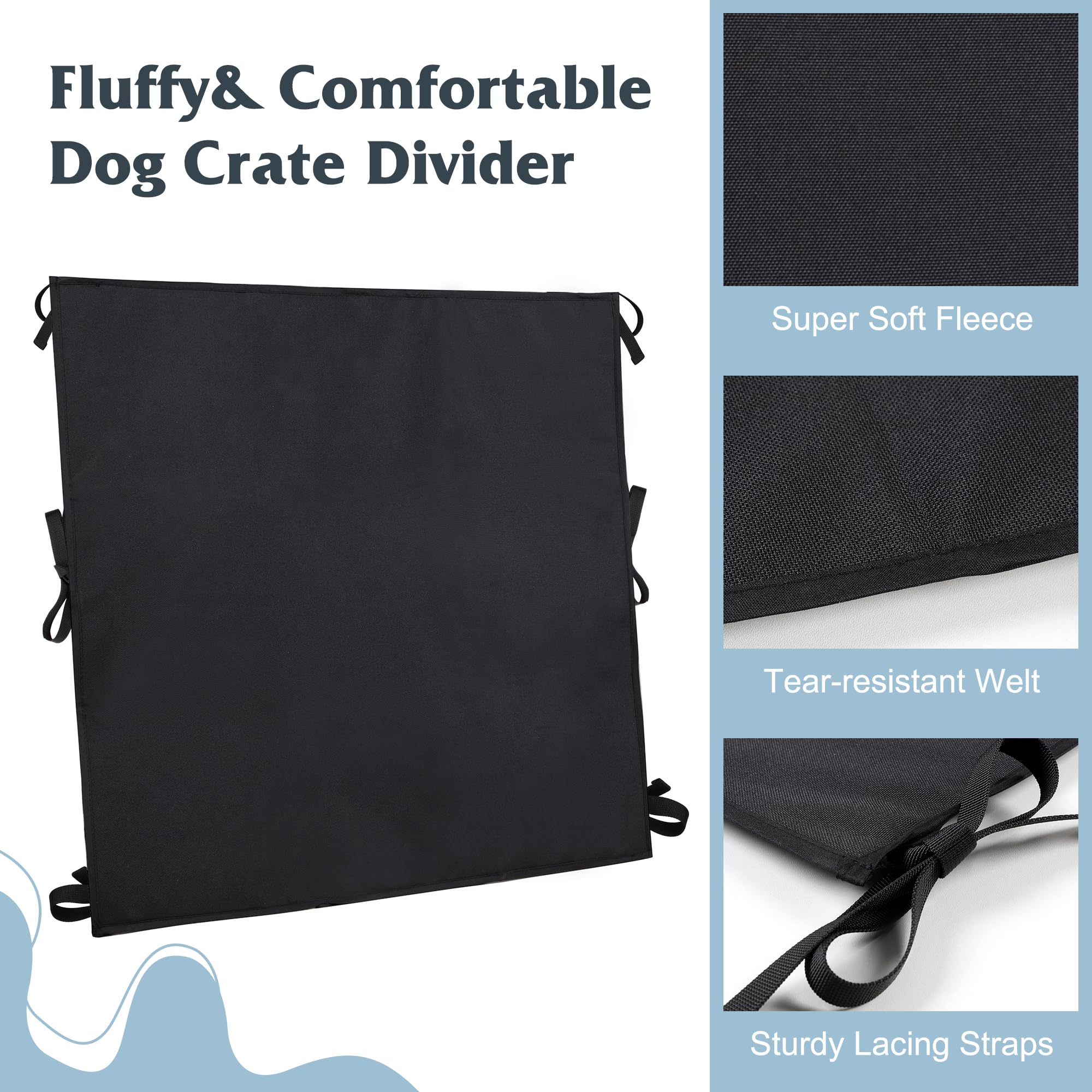 7 Ties For Fastening:No metal parts, no worries about your dog accidentally eating it. Attach dog crate divider to dog crate with ties, easily and durable. 7 lace-up straps are distributed on both sides to hold them securely in place without slipping or loosening