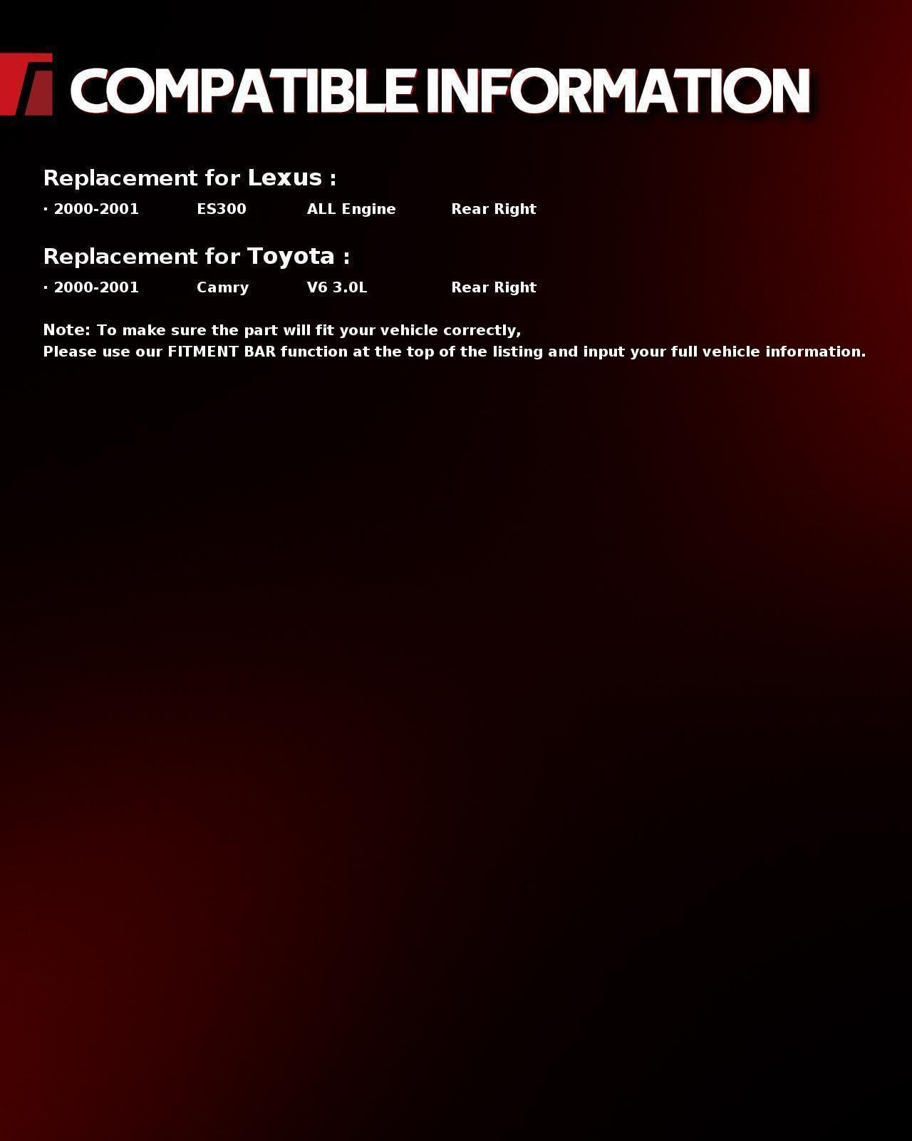 【Product Adaptation】:Torchbeam Rear Caliper for Toyota 2000-2001 Camry 3.0L, Lexus 2000-2001 ES300