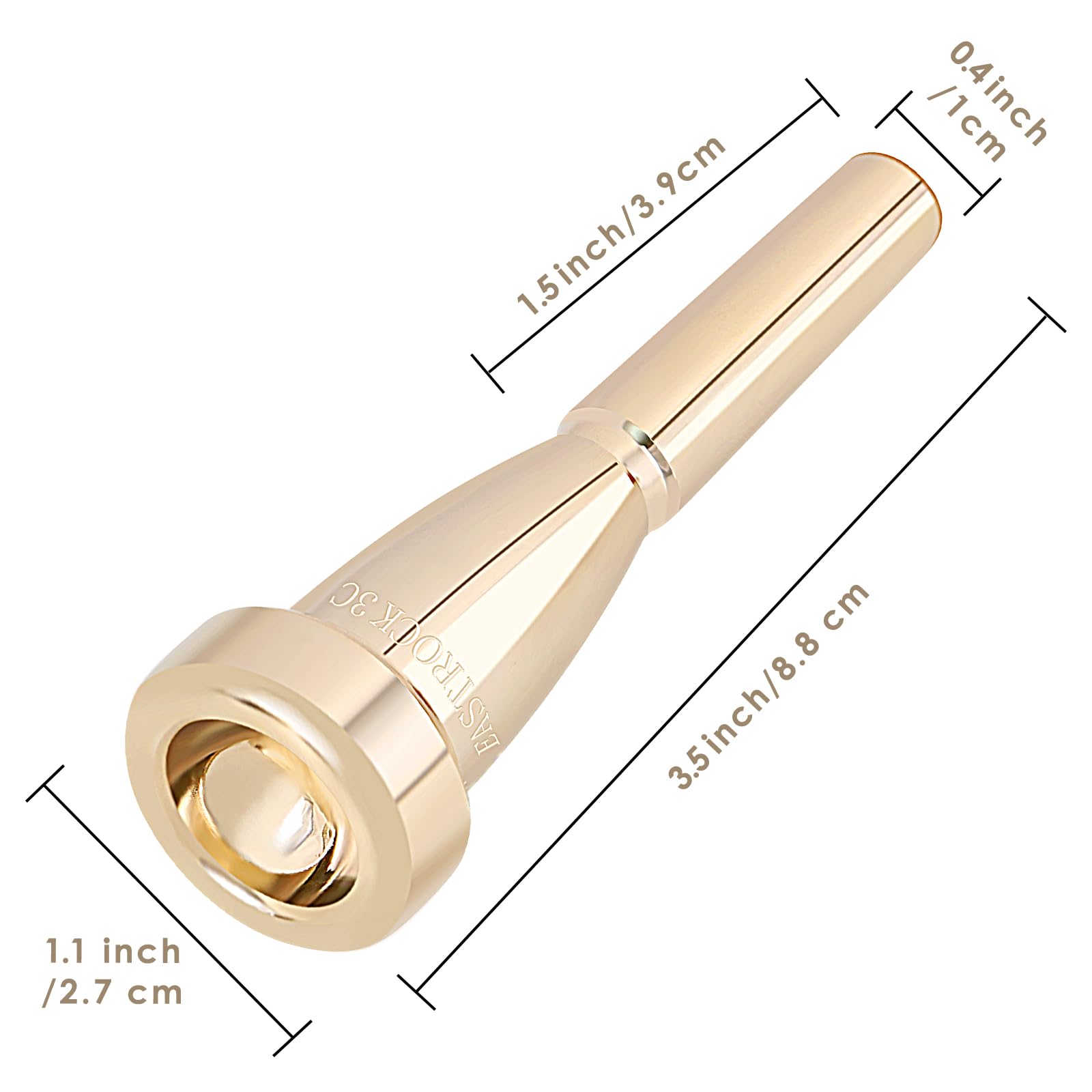 EASTROCK Trumpet Mouthpiece 3C Gold Plated Bullet Shape Vaccum Package