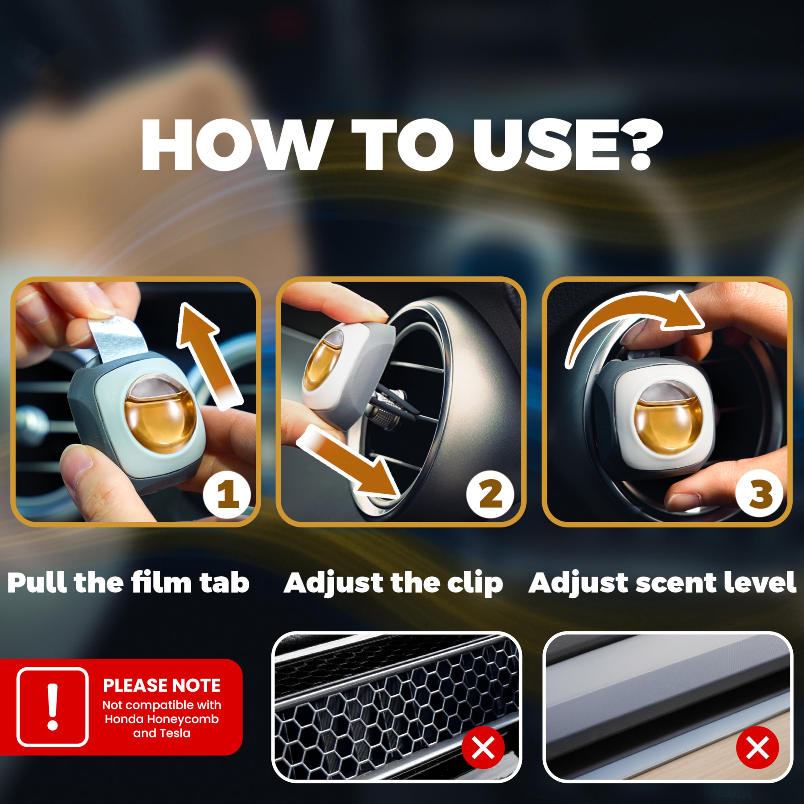 Features a 3-level scent control so you can choose your preferred fragrance intensity. The car air freshener vent-clip design attaches securely and fits most standard vehicle air vents for simple, convenient use; A great car accessory