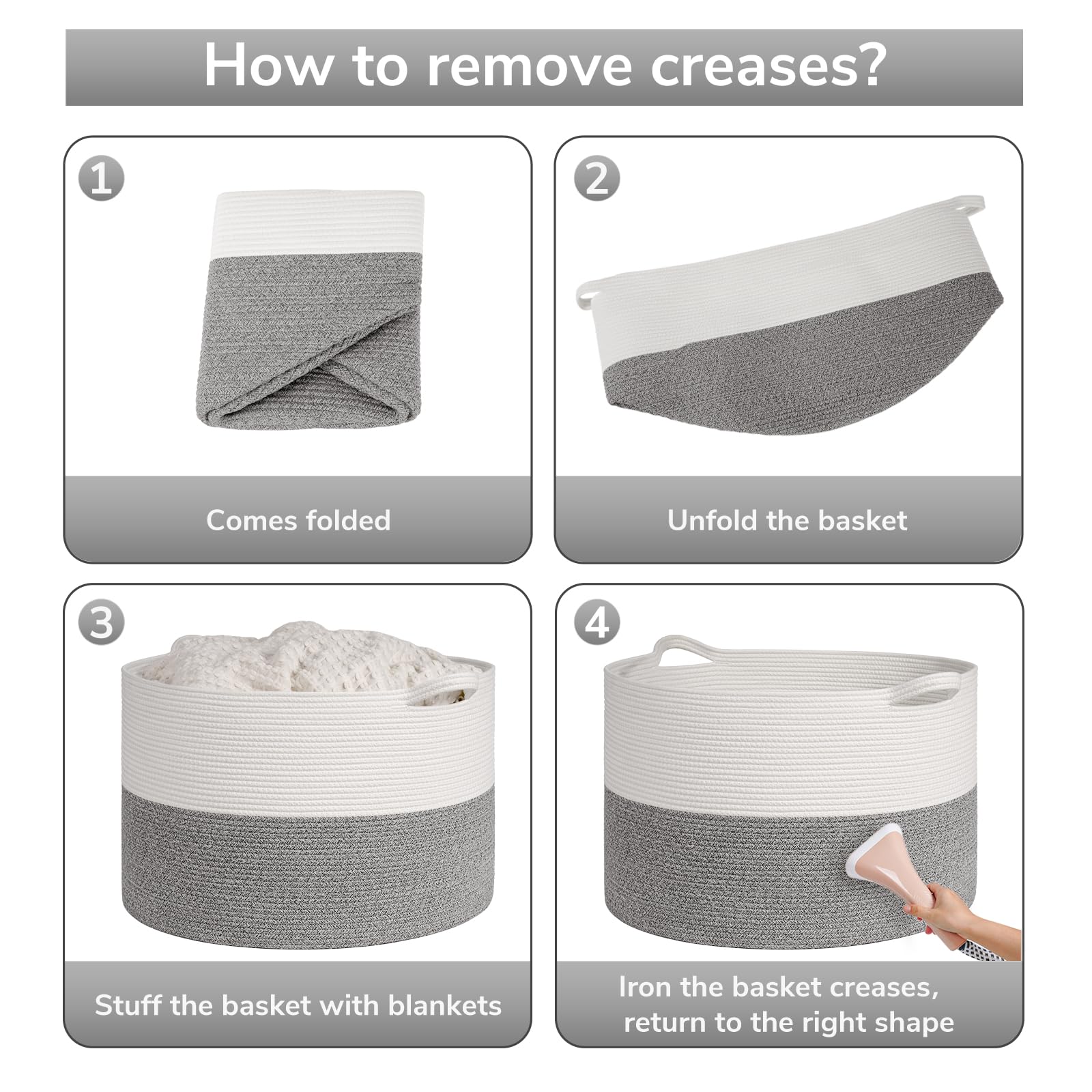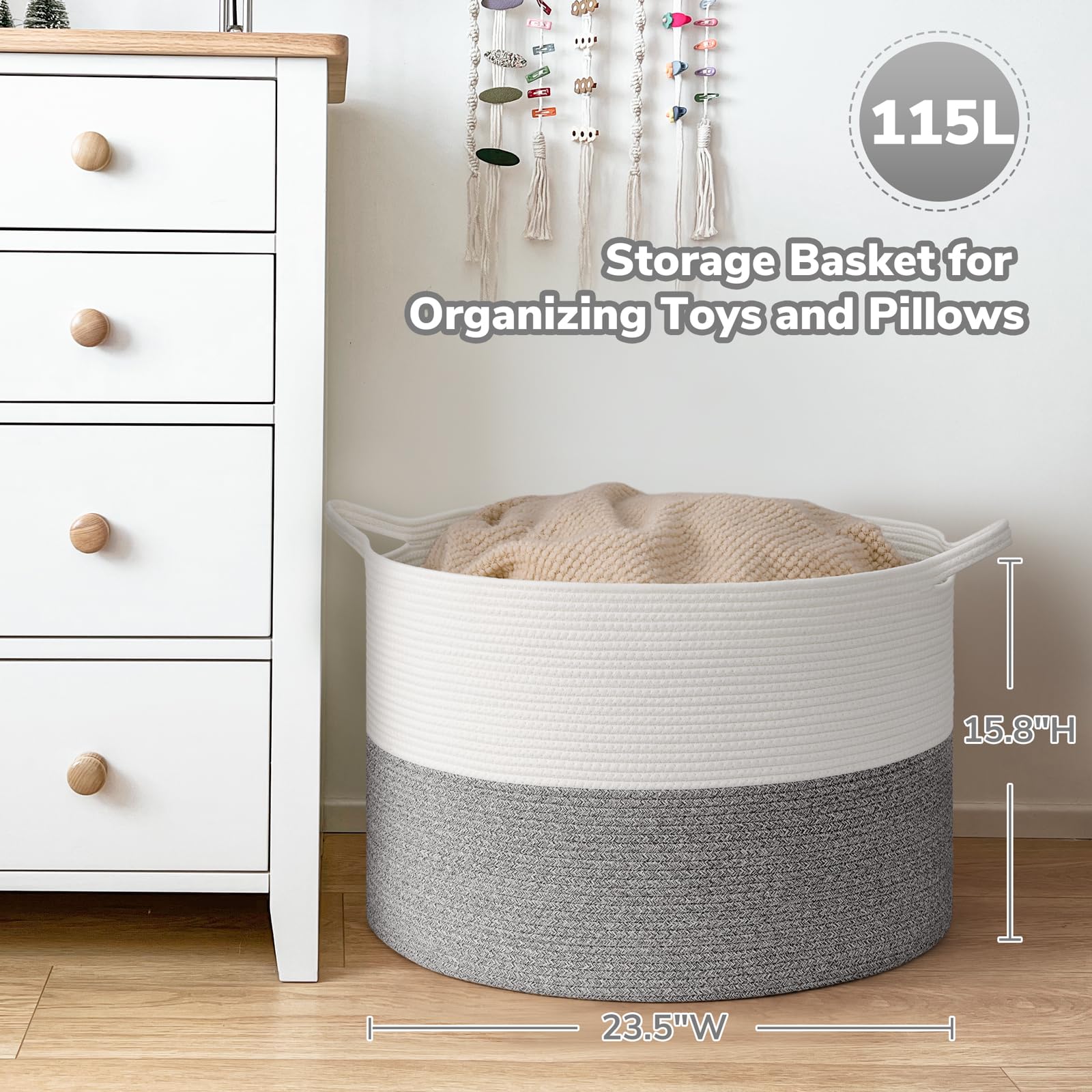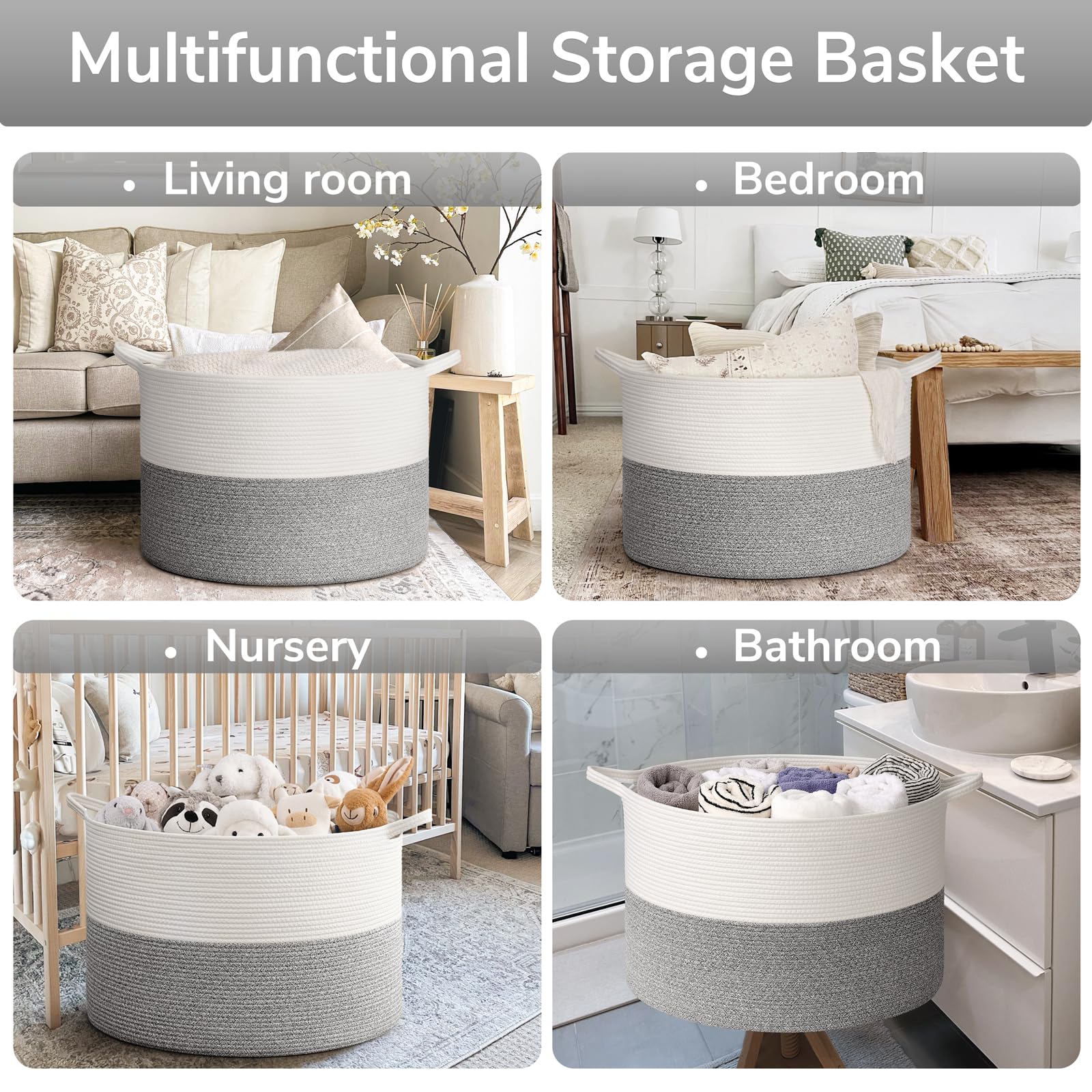 Sturdy and Soft Material: Our cotton rope basket is made of thick, sturdy fabric that is good for babies, kids, and pets to touch. It is also no chemical smells, making it perfect for storing a wide range of items