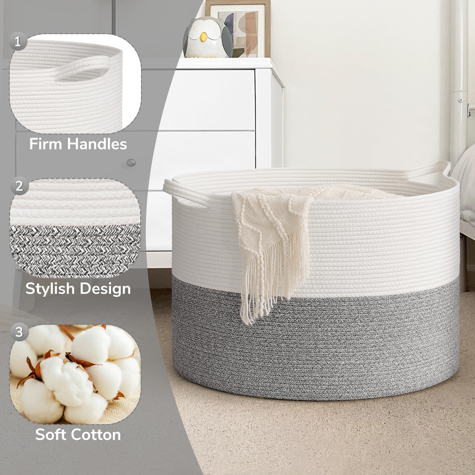 Stylish and Elegant. This large basket boasts a unique and stylish color design that can decorate any space in your home, such as living room and bedroom
