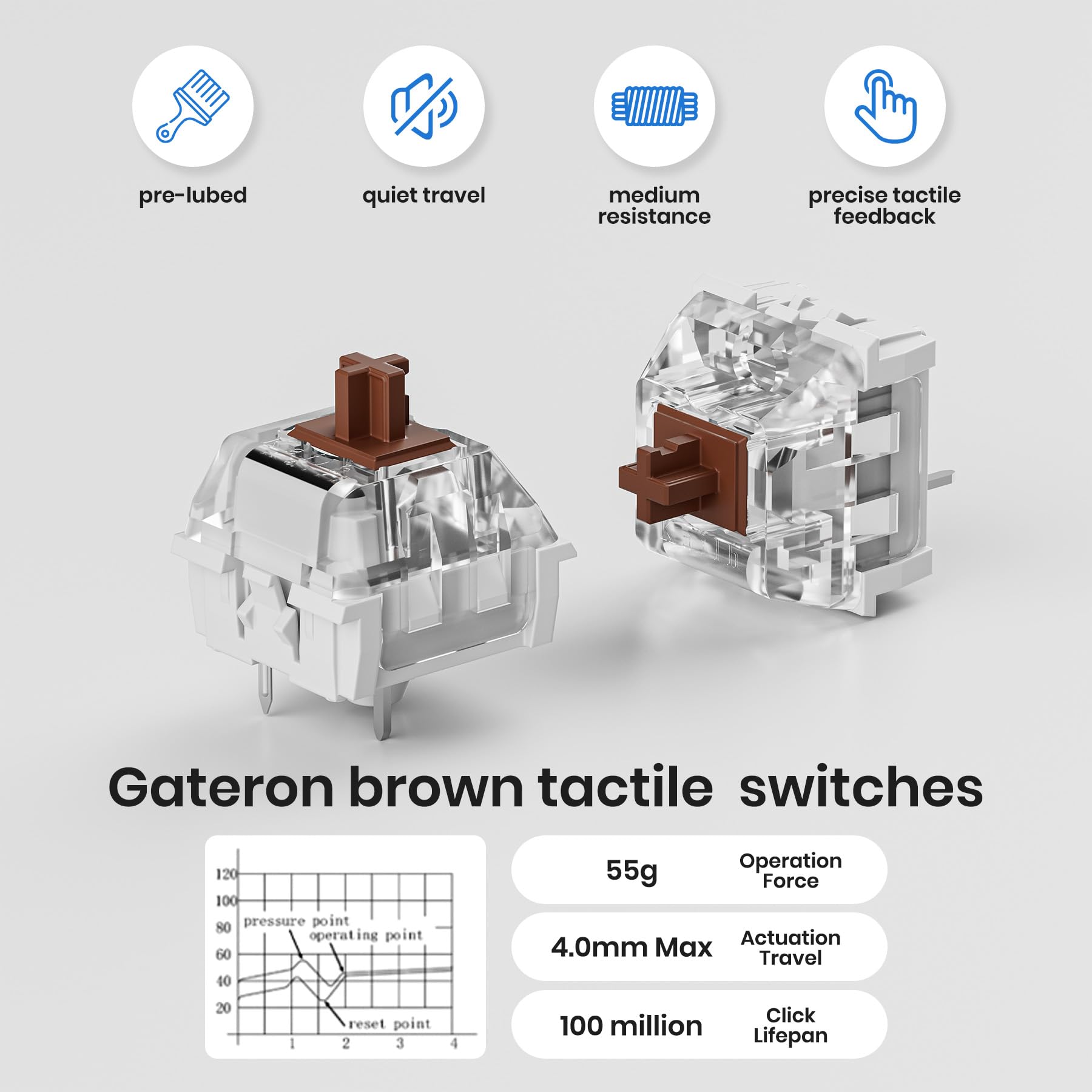 【Premium Feel& Sound】Every Kisnt mechanical number pad is designed with a multi-layered cushion, the poron bottom layer, combined with the sandwich foam and IXPE switch pad makes every keystroke consistent. Pre-installed Gateron brown switches offer a quieter, tactile typing experience- ideal for office or shared spaces where noise matters. Also you can hot-swap the numberpad with almost all of the 3 pin and 5 pin switches on the market.