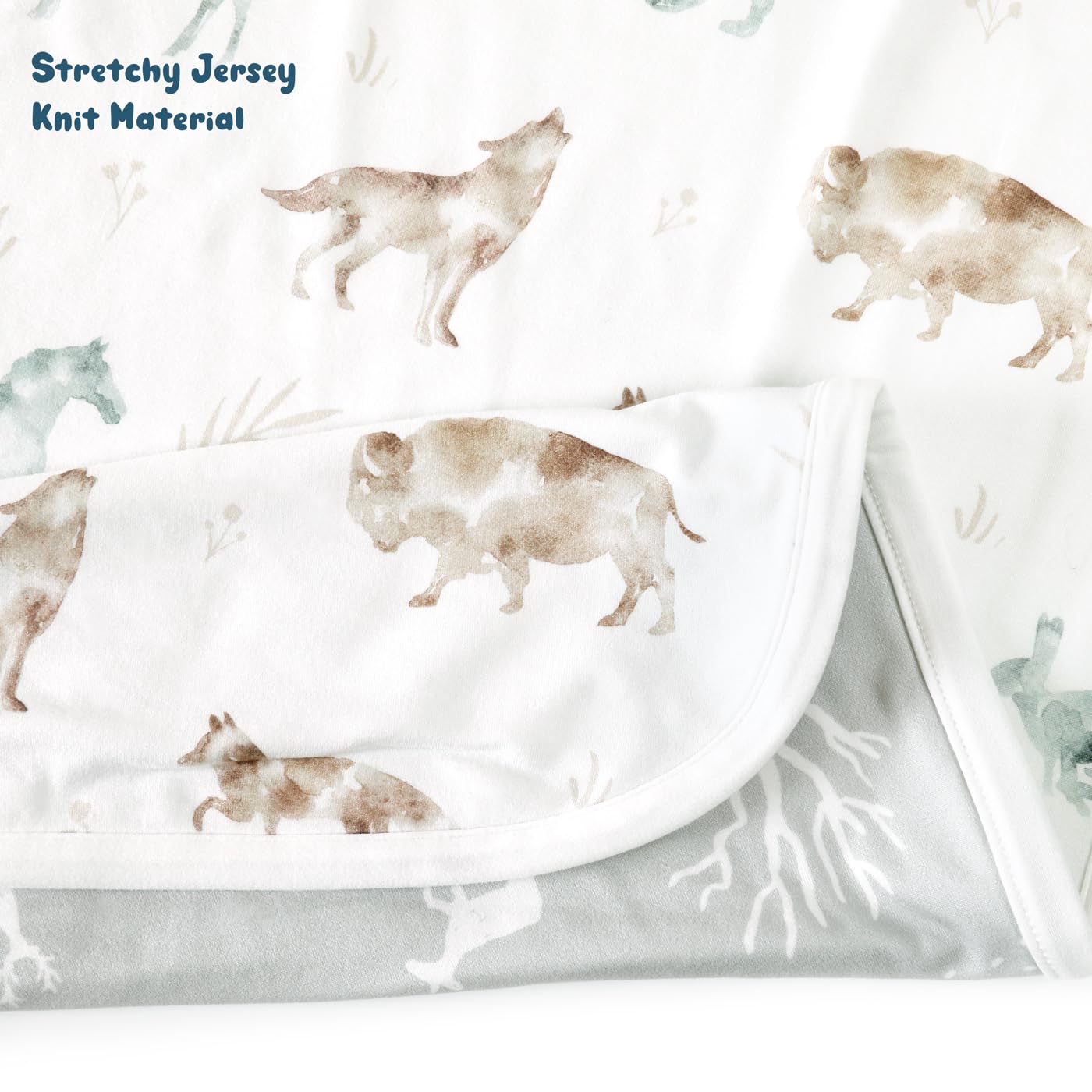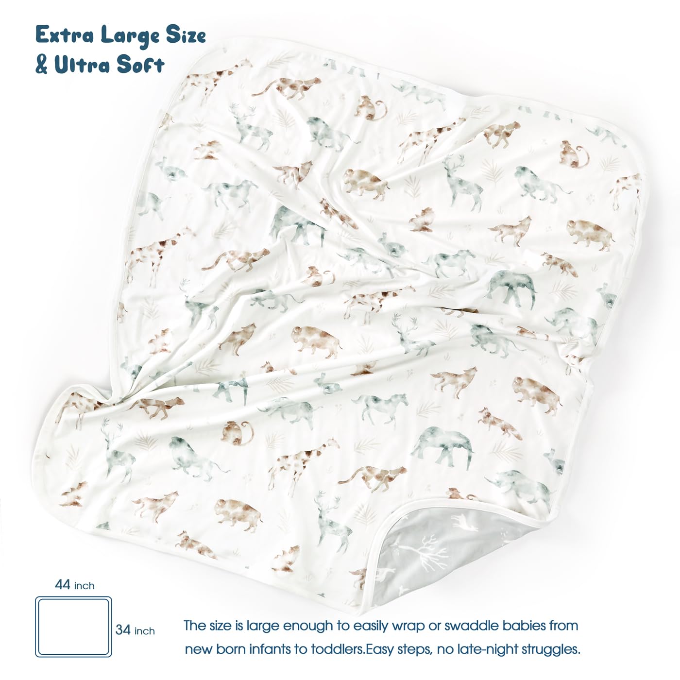 Double Layer: Double layer in medium weight is perfect for all seasons. Measures 34" W x 44" L is great as a swaddle or receiving blanket in cold season and make it as a quilt and play mat in the hot season. The blanket will bring a comfortable sleeping temperature to your baby.