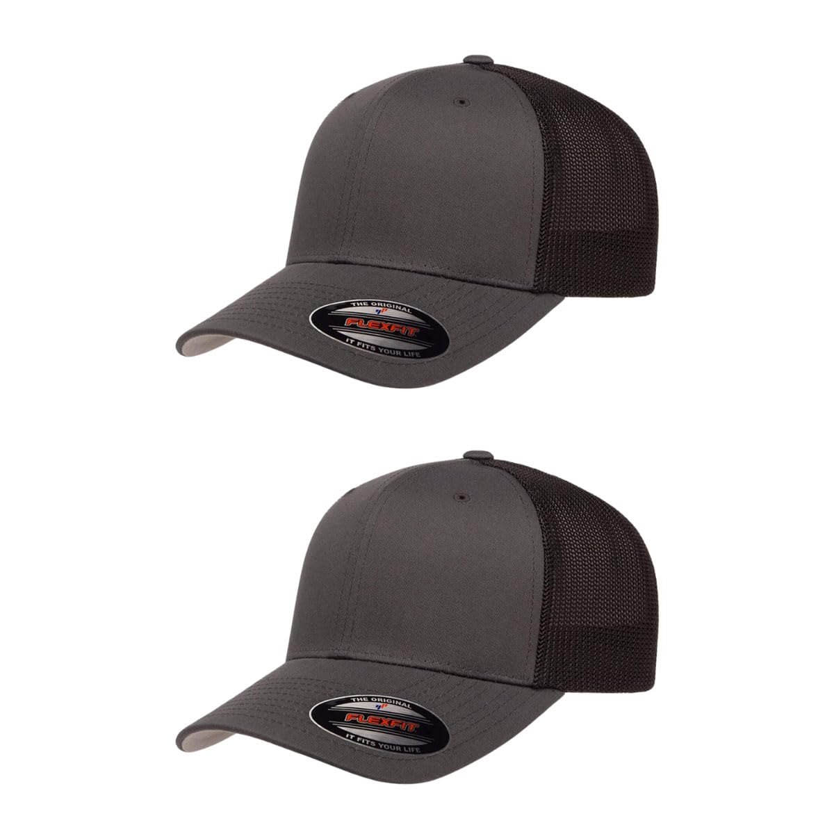 Great-Looking Trucker Hats for Men and Women: These blank 6-panel FLEXFIT hats feature a mid-profile design with stretchable mesh backing and FLEXFIT sweatband that stretches to fit many sizes