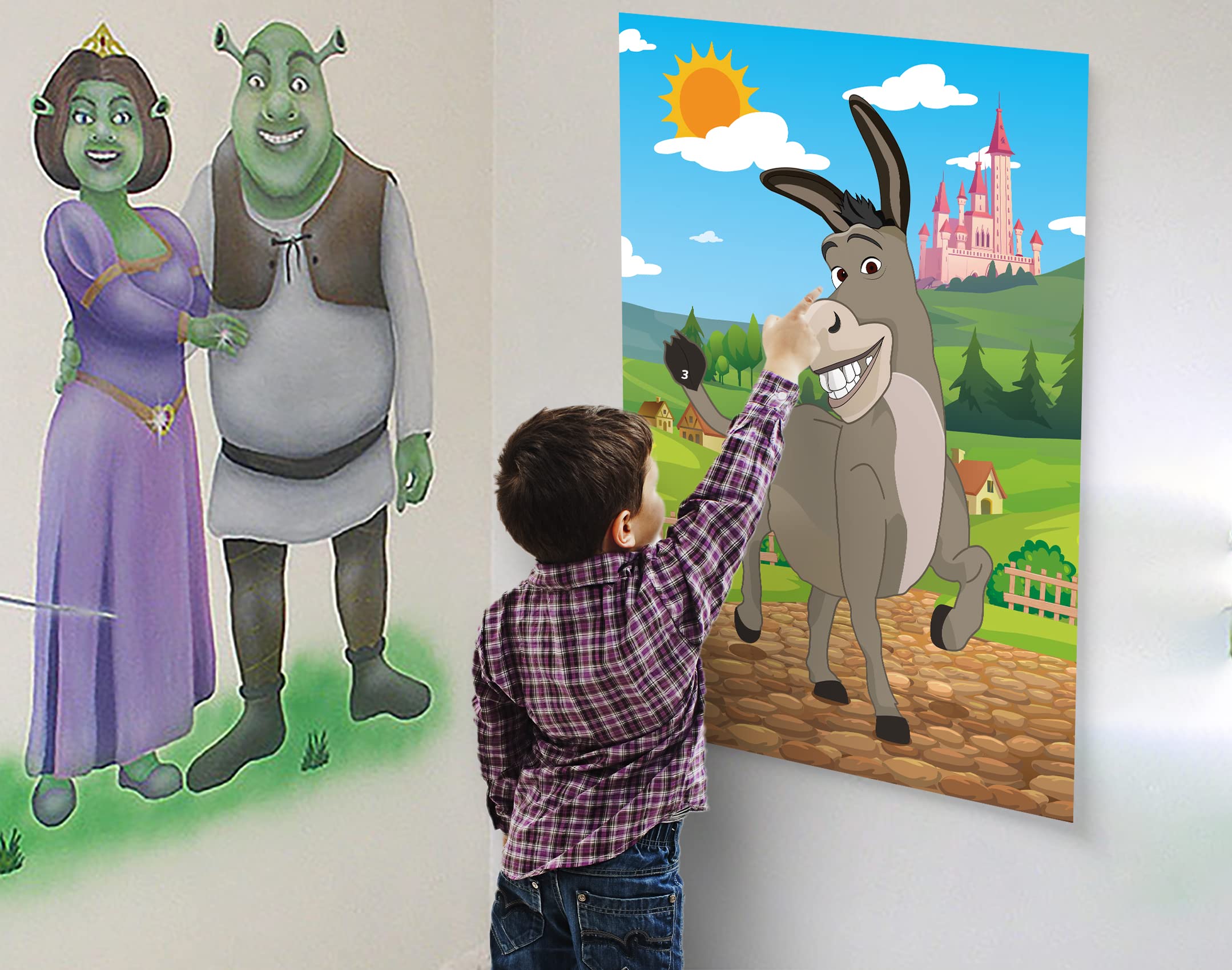 FUNNY DESIGN: Look at this pin the tail on the donkey poster, a beautiful castle, blue sky, green grassland and a funny donkey, This sunshine donkey will brighten kids rooms and kindergartens, bringing love and joy to kids