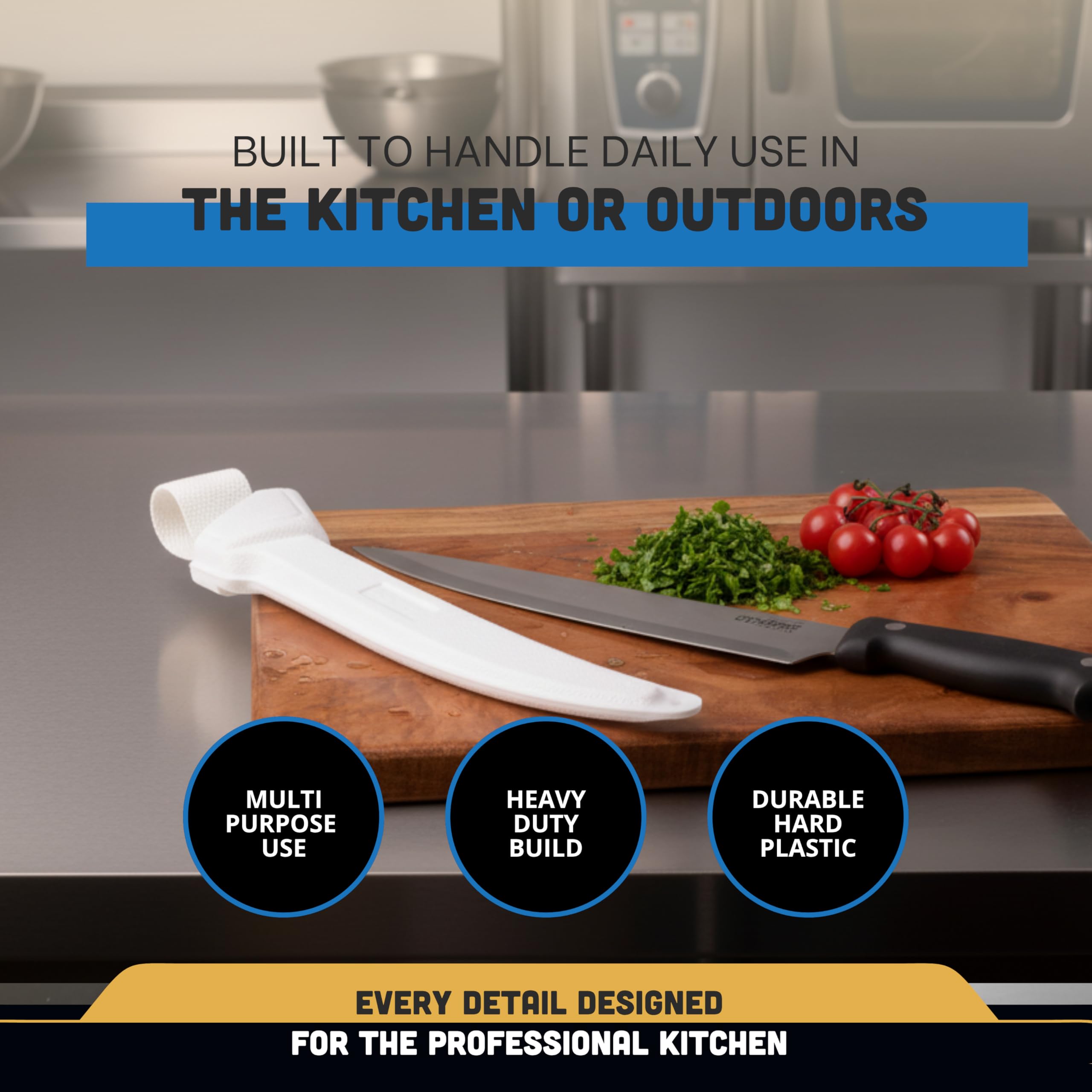 DURABLE MOLDED DESIGN: Built from heavy-duty white polypropylene, this knife storage case withstands daily kitchen use, outdoor fish prep, and commercial food service environments.