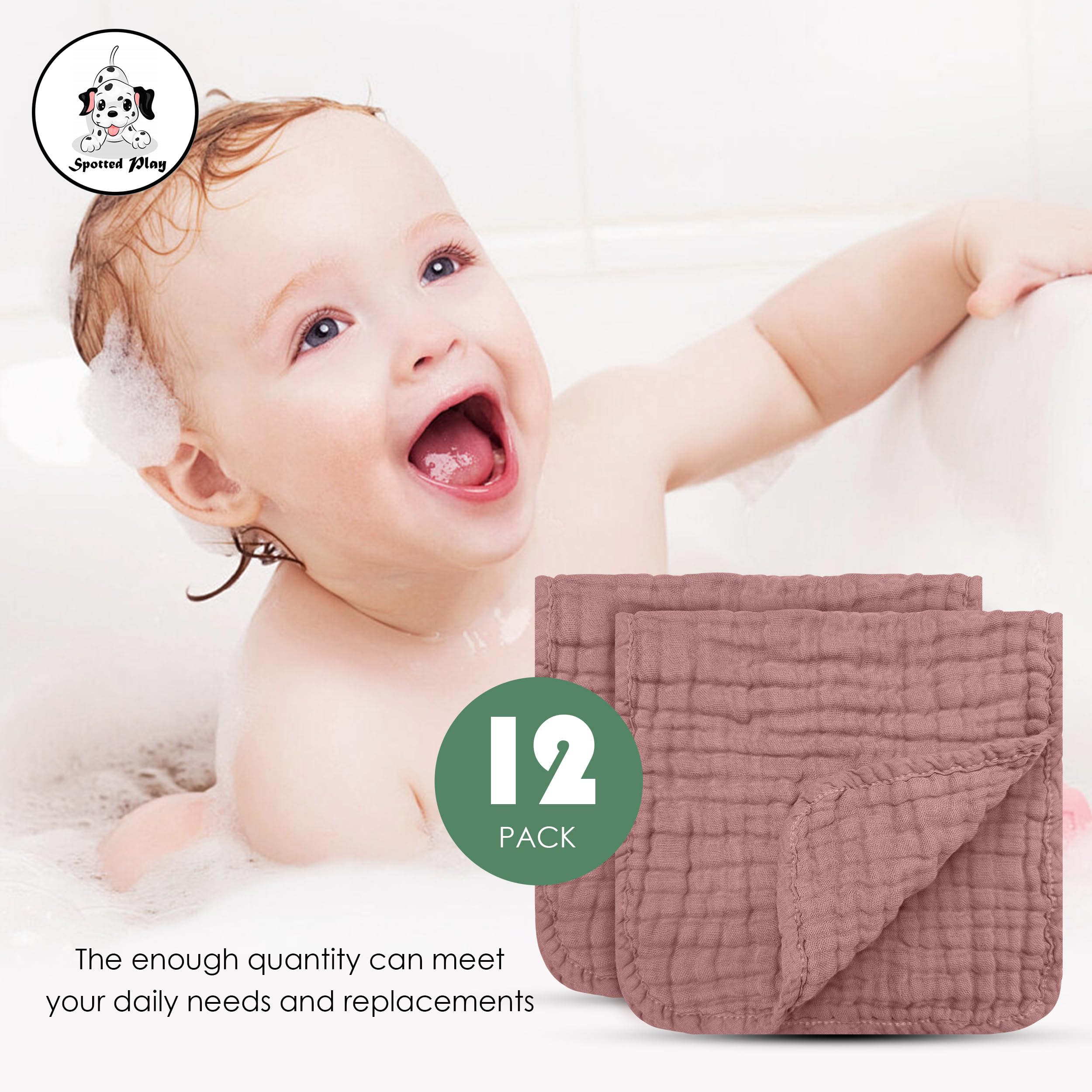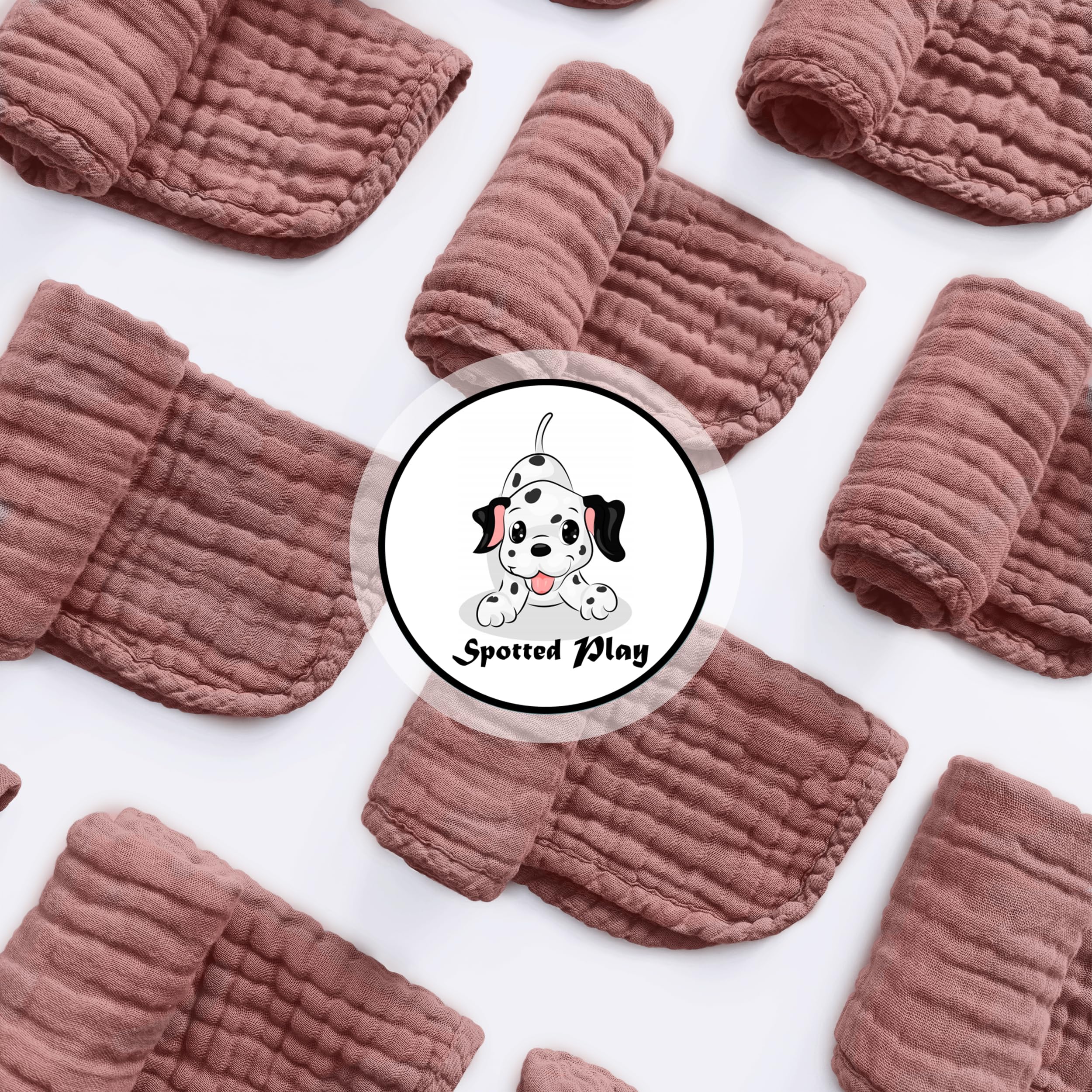 Spotted Play 12 Pack Muslin Cotton Baby Burp Cloths - 20"x10", Bean Paste