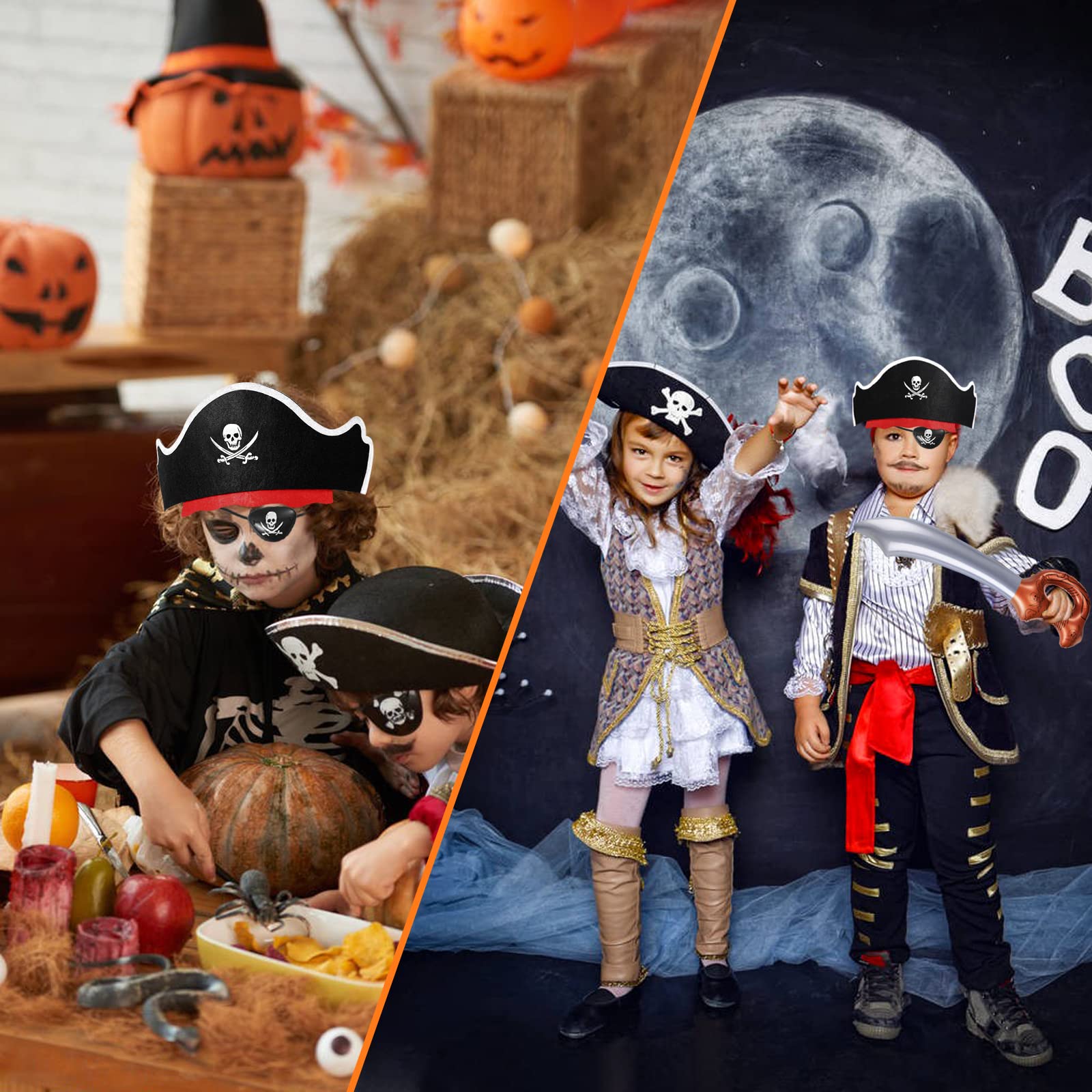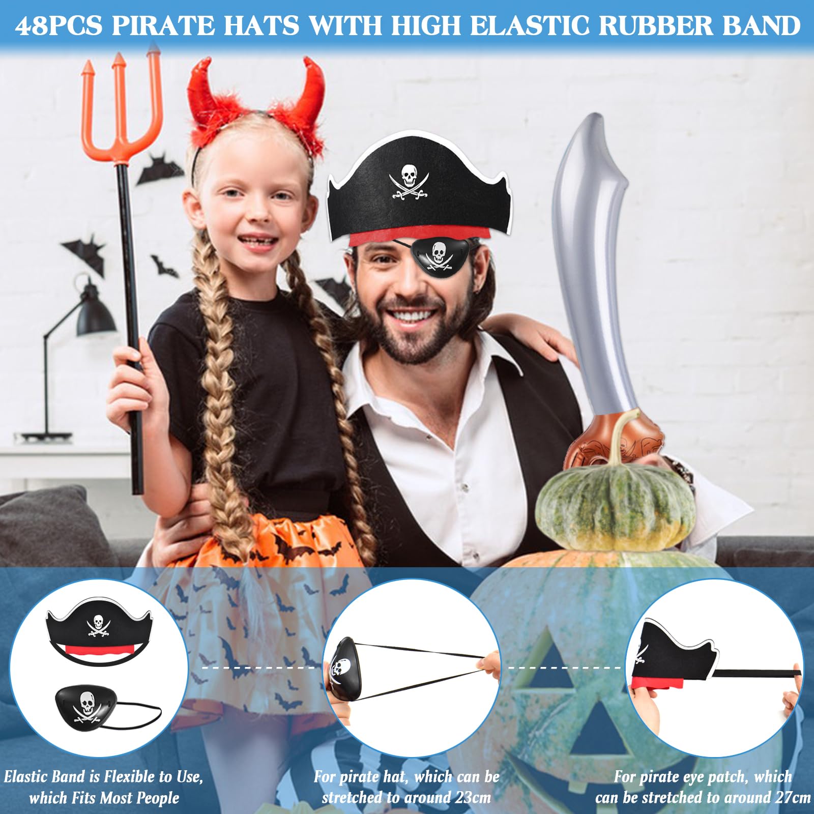 【Design】Each pirate hat, eye patch and pirate sword is designed with a skull and a cross knife, full of festive atmosphere, invite your friends to role play together and to start your fun tour of searching treasure