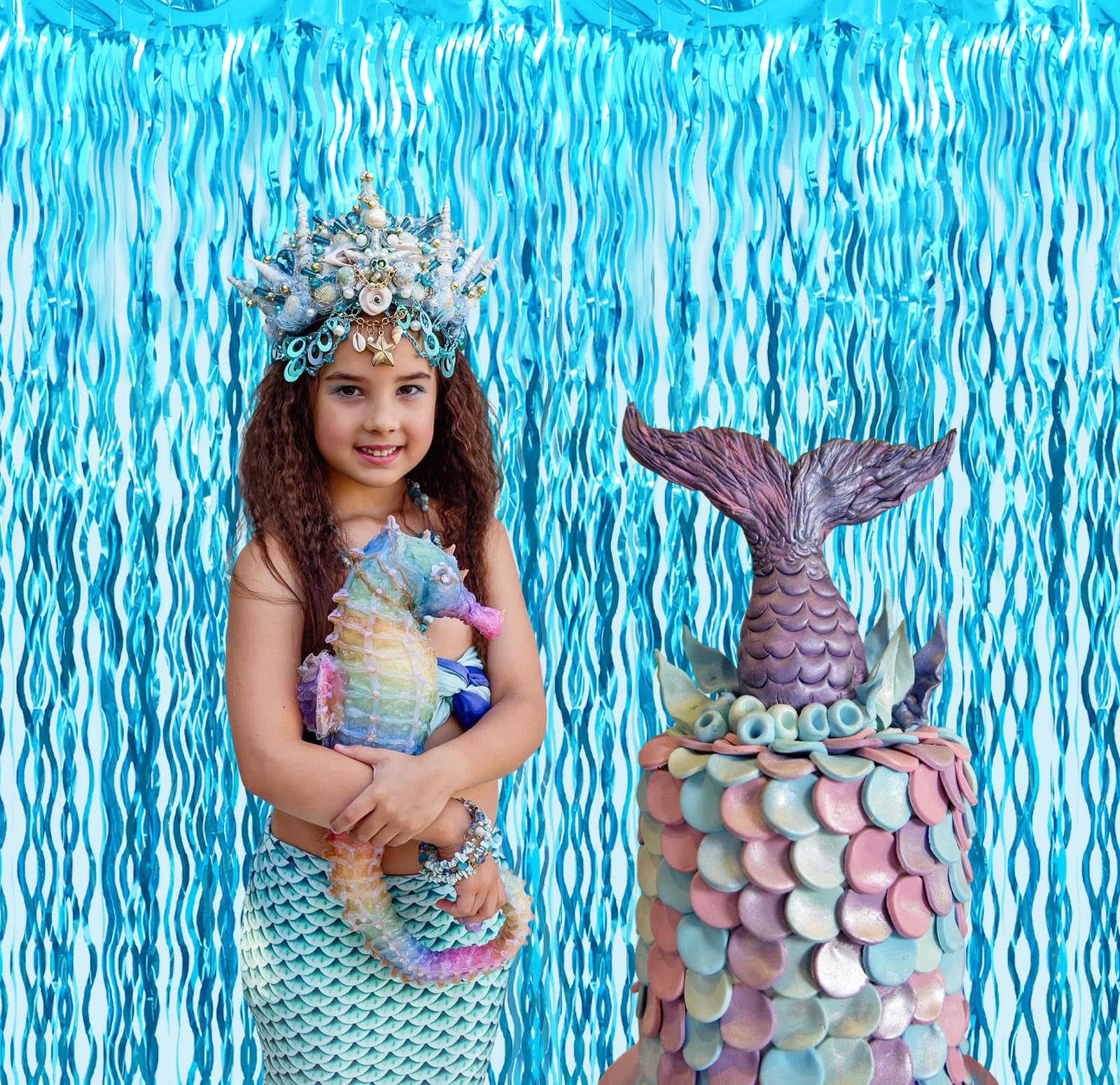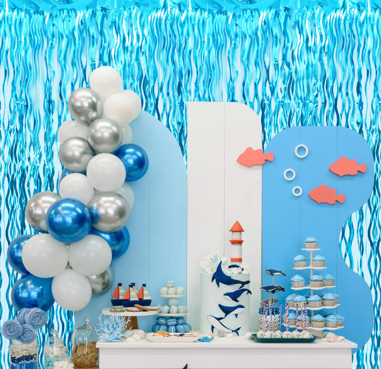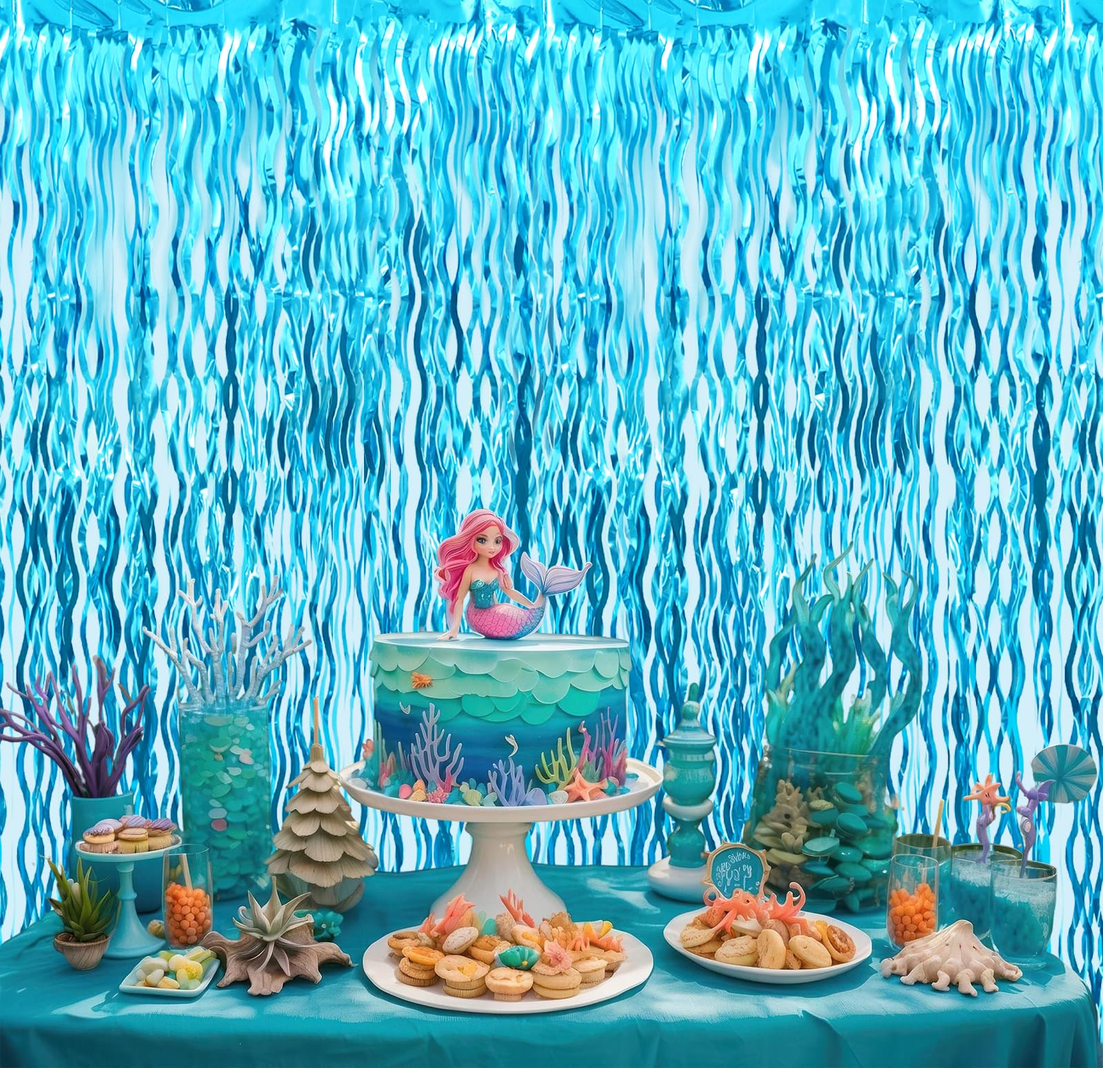 Package Includes:4 pack wavy light blue foil fringe curtain,3.2 ft x 6.5 ft each,suitable for hanging on a door or coverage a wall fully