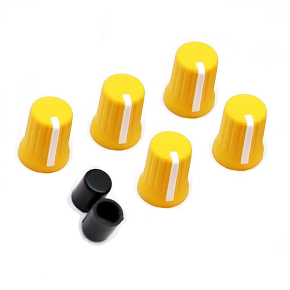 【What You Receive】5 pieces yellow universal EQ potentiometer knobs.