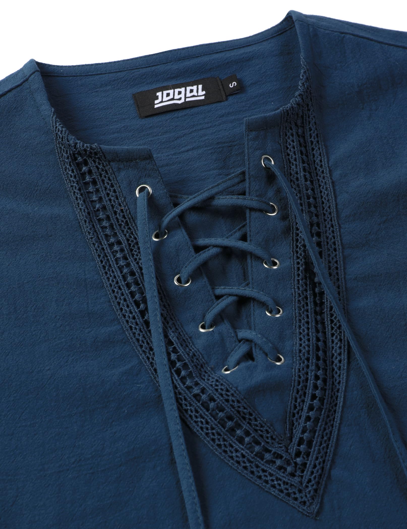 Design: Medieval Pirate Style/ Retro Renaissance Shirts/ Viking Tunic/ Roll-up Sleeves/ Novel Lace V-neck Collar