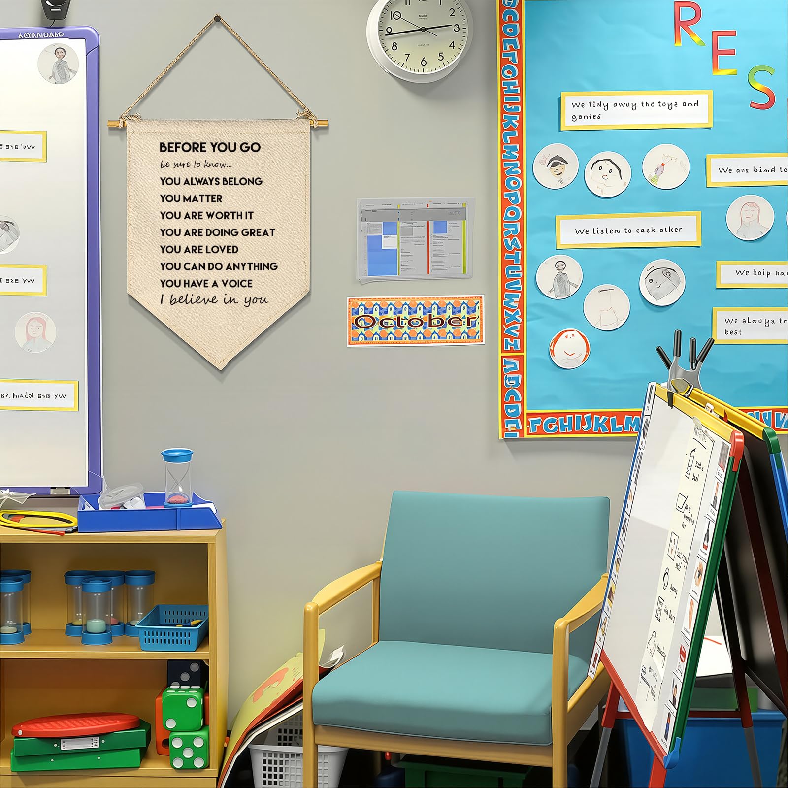 Versatile Teaching Placement: This beige canvas pennant fits perfectly on doors, exit areas, or dedicated homeschool study zones. It creates a supportive atmosphere for morning meetings and dismissal routines focused on emotional growth and confidence