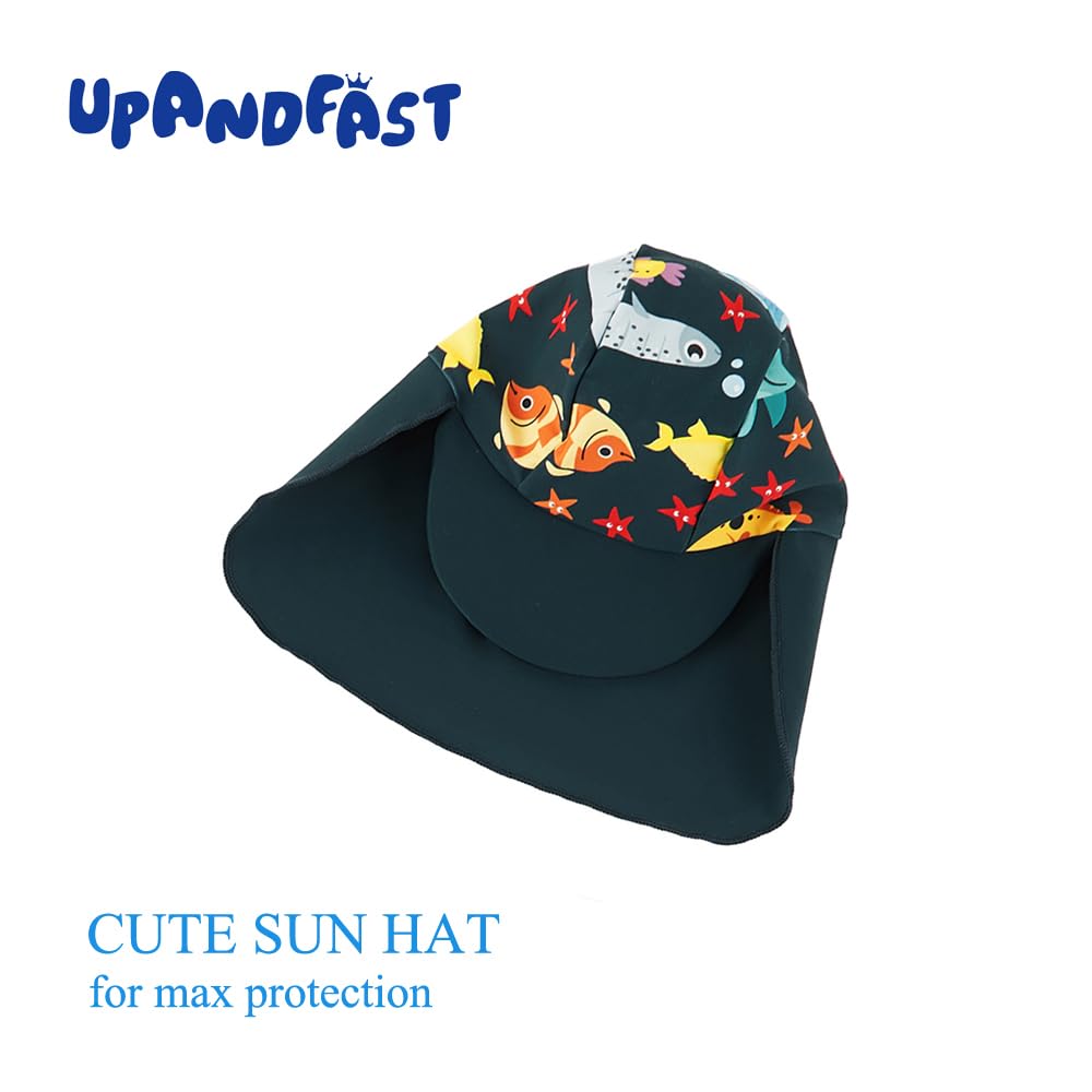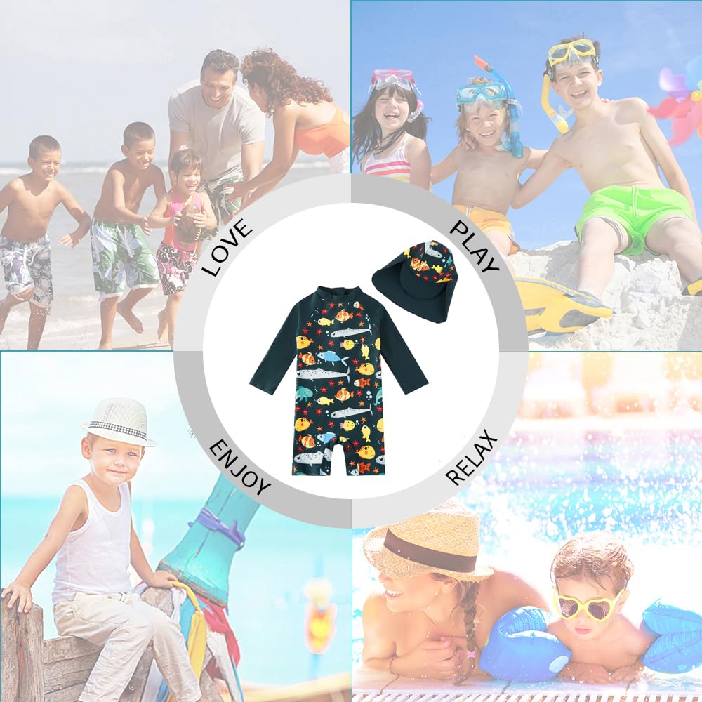 CUTE SUN HAT: Toddler rash guard that comes with a lovely hat, it covers baby's delicate face and neck. which can give baby more protection when playing at the sea, beach or under the sun