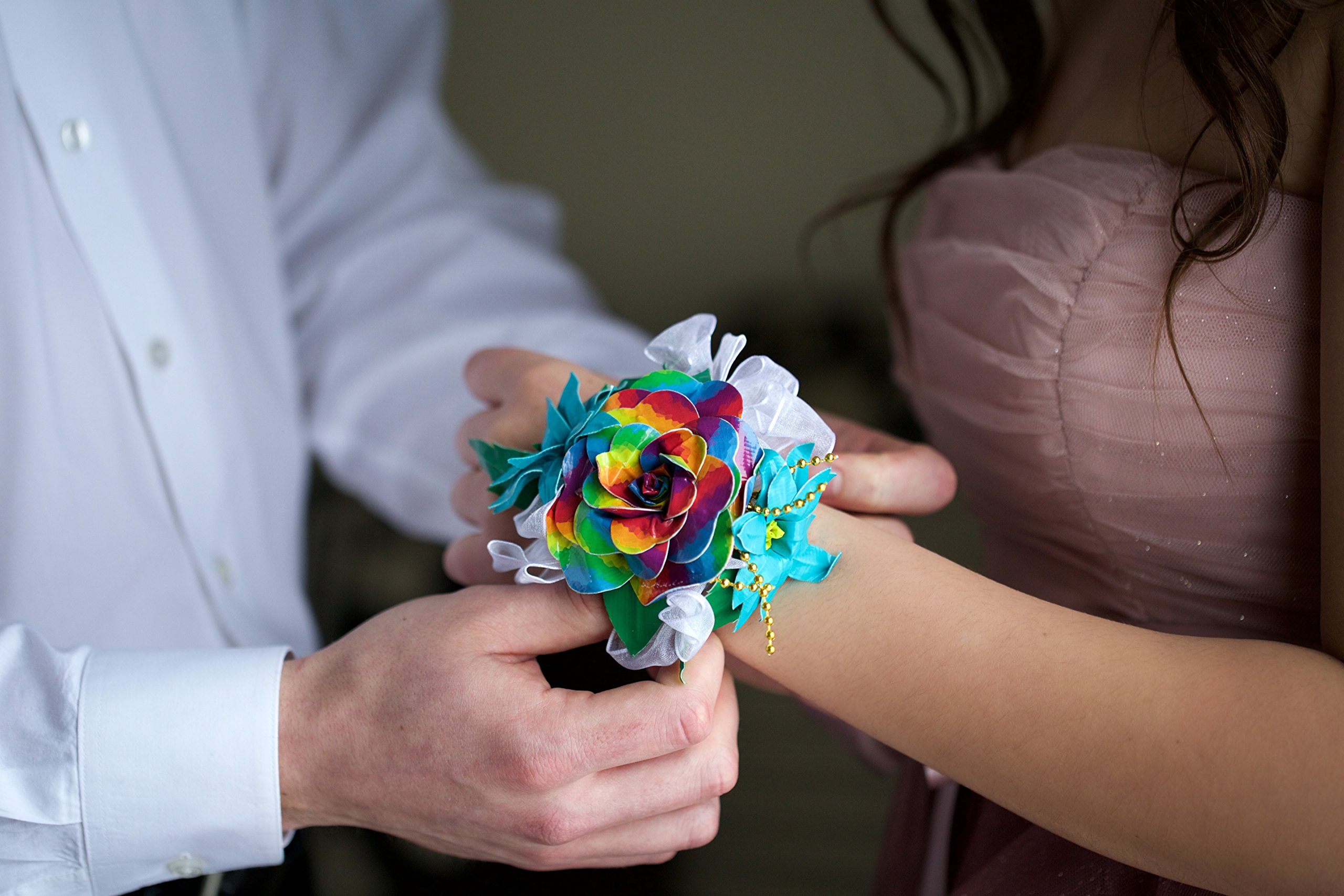 Amazon.com Duck Tape Rose Duck Tape Wallet Duck Tape Book Cover Duck Tape Fabric Duct tape - it's America's favorite fix-all. From industrial strength to general purpose, and classic gray to groovy tie-dye, Duck brand duct tape comes in all shapes, strengths, and colors. Create durable and wildly creative arts and crafts projects with Duck Tape Excellent for coordinating repairs, color-coding materials, fashion, crafting, and imaginative projects High performance strength and adhesion characteristics Tears easily by hand without curling and conforms to uneven surfaces Duck Tape Can Be Fun You can use Duck Tape for fun, durable and wildly creative arts and crafts project. Choose from a broad variety of vivid colors or wild Duck Tape prints. Try a Duck Tape Wallet, or Flower, or even go all out and join students across America making Duck Tape prom dresses. Click a project on the left for instructions. The History of Duck Tape Duct tape has adhered itself so well to American culture that it's become much more than a roll of tape. It's an enduring symbol of all in this world that is functional. So how did this sticky wonder come about? It was World War II and there was a need for a strong, flexible, durable, waterproof tape that could seal canisters, repair cracked windows, repair trucks, and help the war effort in general. Permacell, a division of the Johnson and Johnson Company, stepped up to this challenge. Using medical tape as a base, they applied two new technologies. Polycoat adhesives gave the tape its unshakable stick and polyethylene coating allowed them to laminate the tape to a cloth backing, making it extremely strong and flexible. The resulting tape was nicknamed "Duck Tape" for its ability to repel water, while ripping easily into strips for fast convenient use. After the war the tape was put to the more civilian use of holding ducts together. So the product changed from a nameless army green tape to the familiar gray duct tape. Choose from a broad variety of vivid colors or wild Duck Tape prints Thirty years later, Jack Kahl, former CEO of Manco, Inc., changed the name of the product to Duck Tape and put ‘Manco T. Duck’ on the Duck Tape logo, giving personality to a commodity product. Manco, Inc. also began to shrink-wrap and label the product, making it easier to stack for retailers, and easier to distinguish different grades for customers. Now, over 50 years after its invention, Duck tape is sold in more than 20 colors and is touted by its followers for having a nearly endless amount of uses. What will happen to Duck Tape? What advancements in Duck Tape technology will be made? Only time will tell. Preparing Surfaces to Use Duck Tape When using Duck Tape, whether the traditional silver or one of the rainbow of Duck color tapes, all surfaces should be clean and free of dust or dirt before placing any tape on them. You will want to dust the surface and then wipe the area down with rubbing alcohol. However, rubbing alcohol can dull certain surfaces, so try it on a small, inconspicuous area before applying on a large scale. Product Description Almost everyone has a Duck Tape story to tell, usually praising its remarkable strength and versatility. Duck Brand duct tape has a wide range of applications, both traditional and nontraditional, and is now available in dozens of colors and patterns, making it even more useful than ever! Because of its strength and adhesive properties, you can use Color Duck Tape for almost any job, including everyday household and auto repairs--anywhere a flexible and weather-proof bond is needed. Great for temporary indoor floor marking and removes cleanly from most surfaces up to 3 weeks. Not recommended for hardwood floors or in direct sunlight. Color Duck Tape is great for coordinating materials, color-coding and identification, craft applications, and more. This heavy duty tape is cotton mesh reinforced, but still easy to tear! Duck Tape conforms to both smooth and uneven surfaces, and can be used on materials such as cloth, vinyl, leather and plastic - even metal and laminates. Duck Tape is great for any repairs - anywhere!.