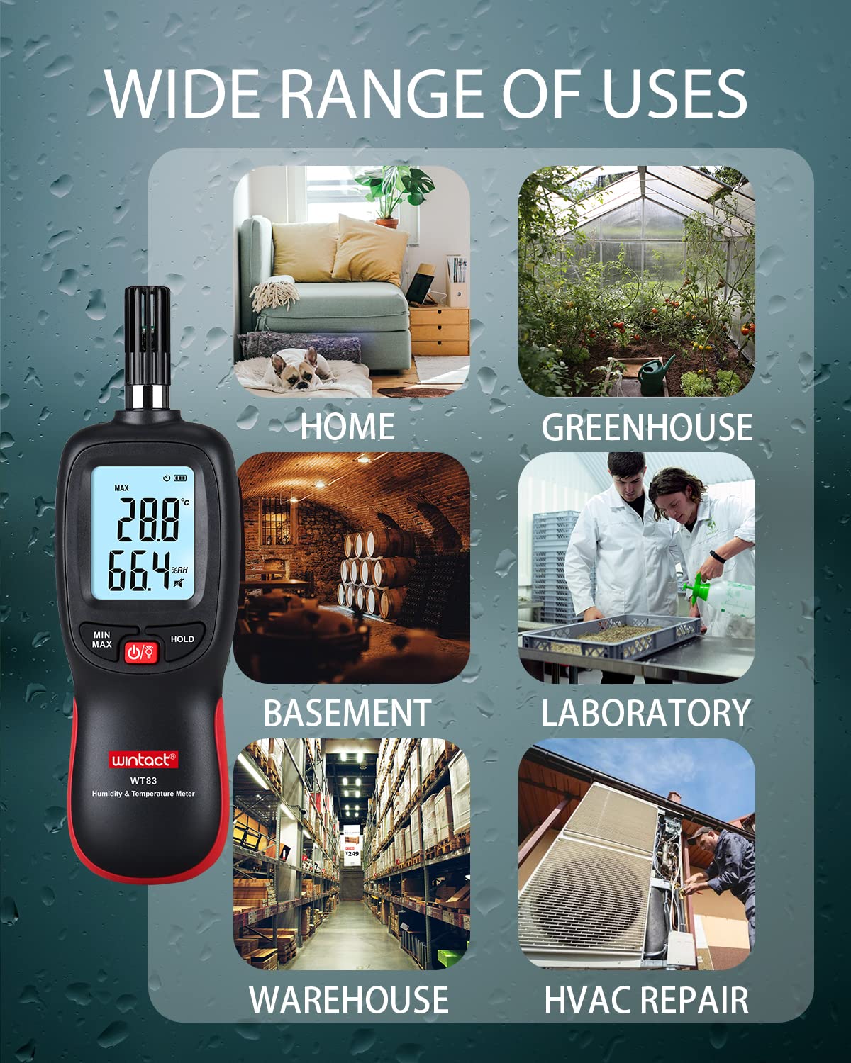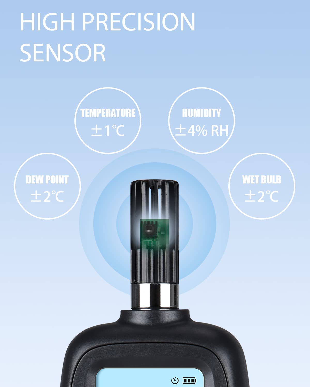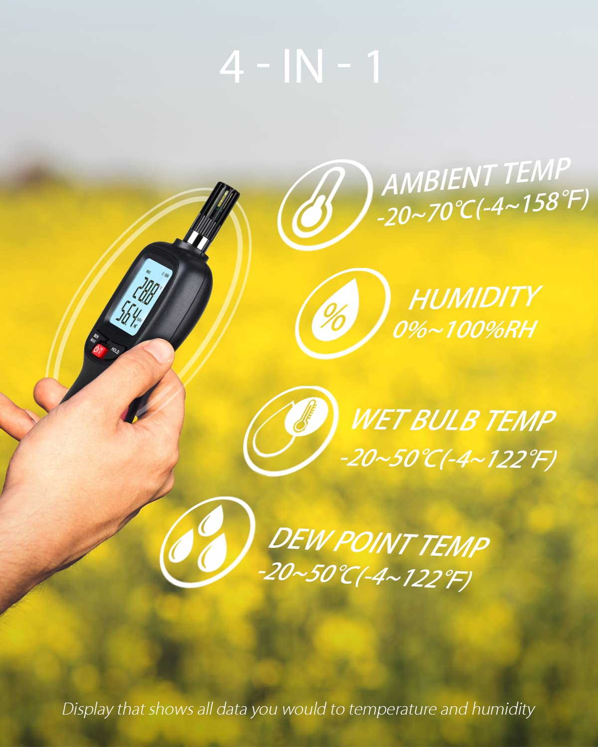 FOR ACCURATE MEASUREMENTS ANYWHERE: It is designed to combine the functions of humidity meter, temperature meter, wet bulb temperature, and dew point temperature. A hygrometer helps you to monitor and keep the humidity in the proper zone.