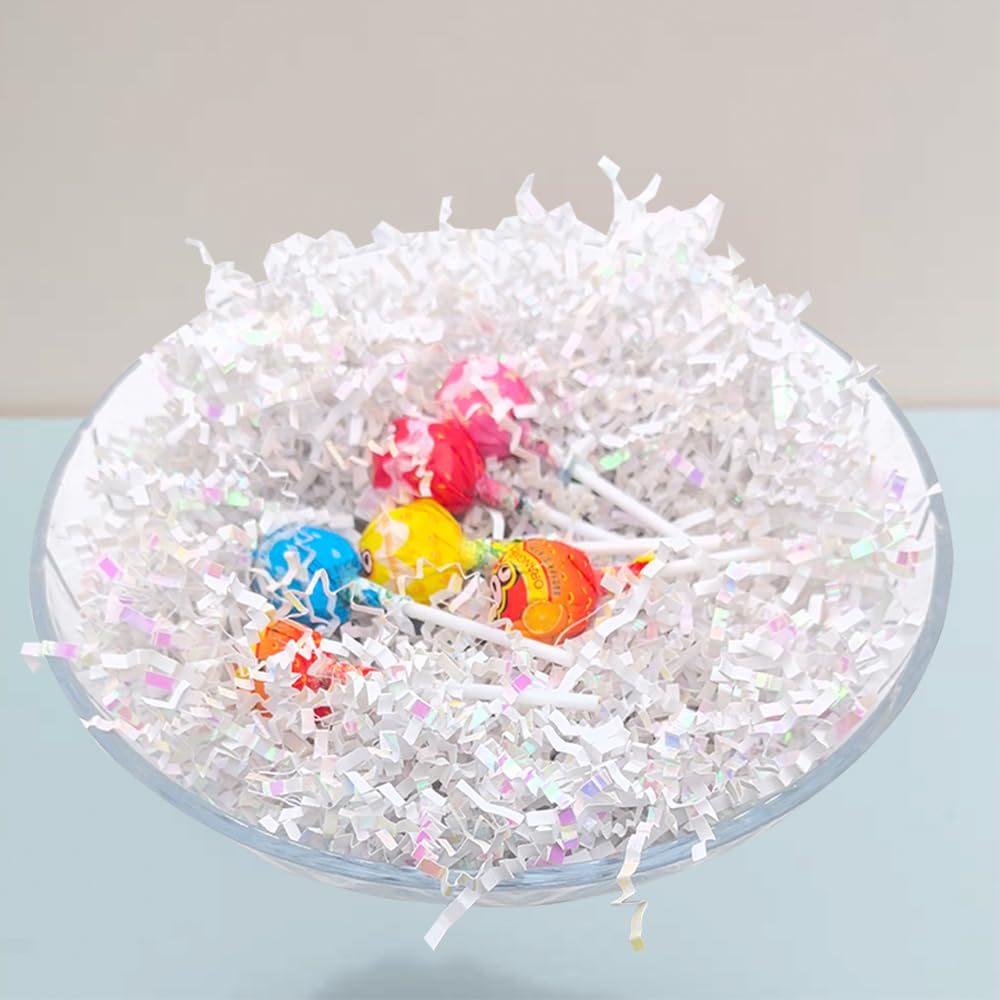 This is great stuff for wrapping and insulating gifts from the bumps, shakes and drops of wrapped gifts, just to jazz up your packing of fragile items for shipping. If you are looking for affordable, recyclable gift package filler, this beautiful soft metallic iridescent crinkle cut shredded filler is the perfect choice. Package Included: 1/2 LB Diamond White Colour Crincle Cut Shredded Paper