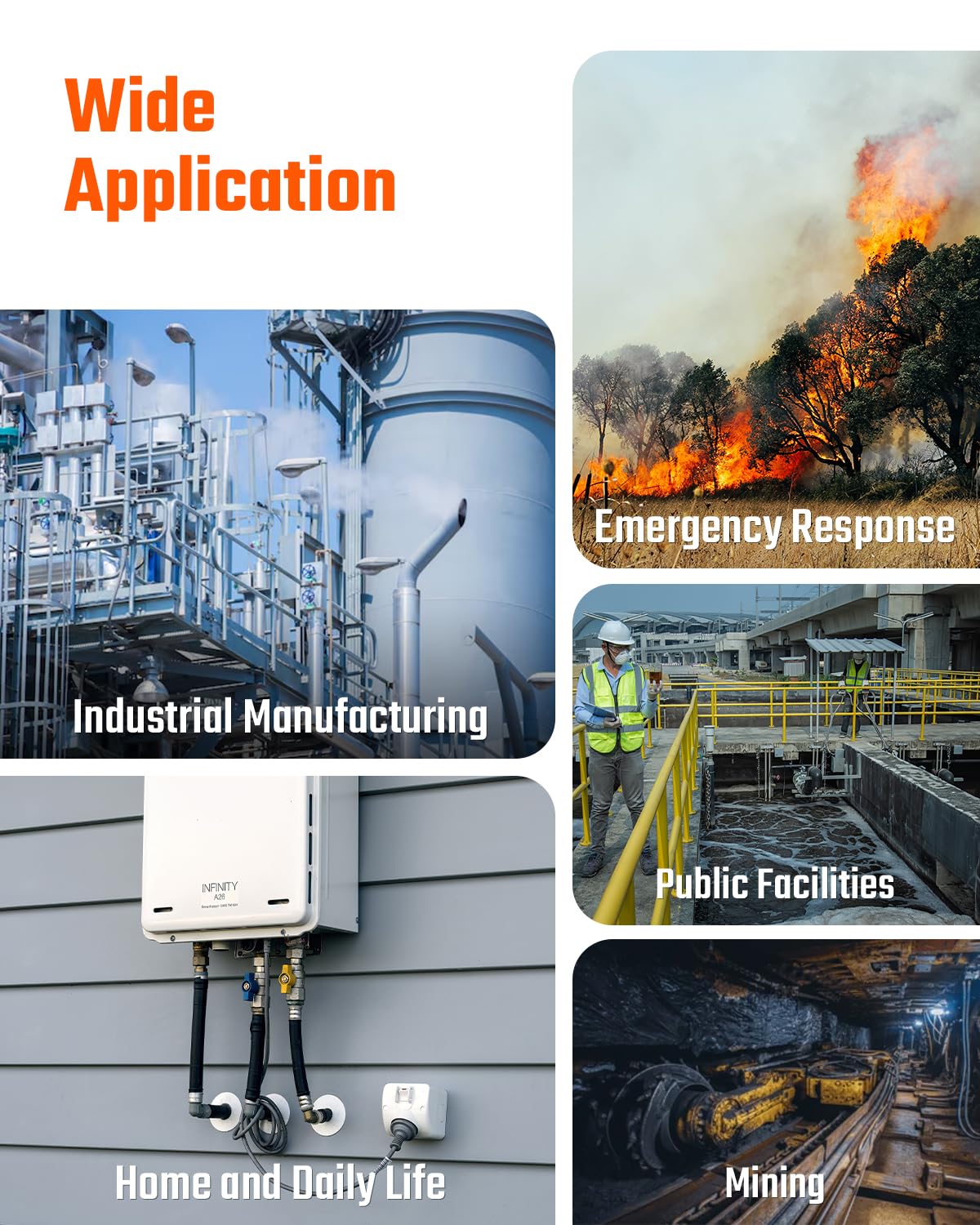 What You Get: Your purchase includes the Guard-156 gas detector, packaging box, user manual, charging cable, and a standard gas hood. Suitable for industrial manufacturing, mining, agriculture, emergency rescue, and home use