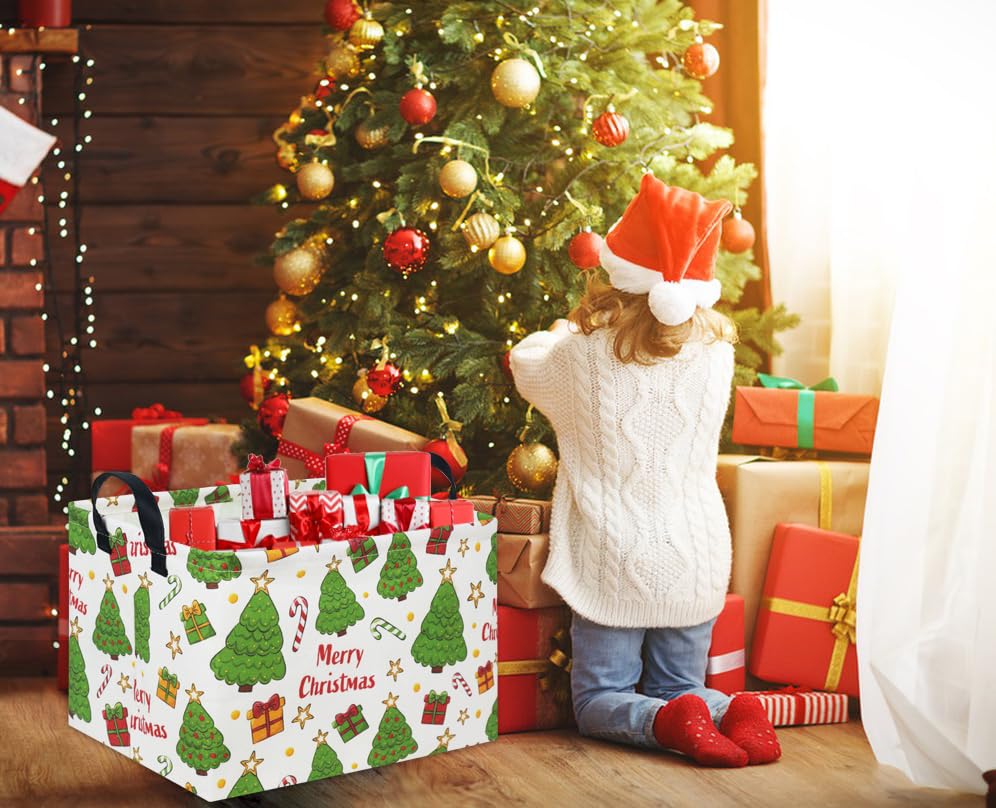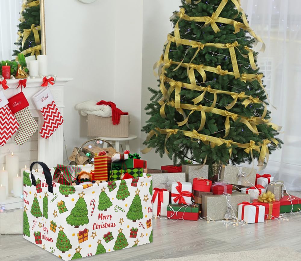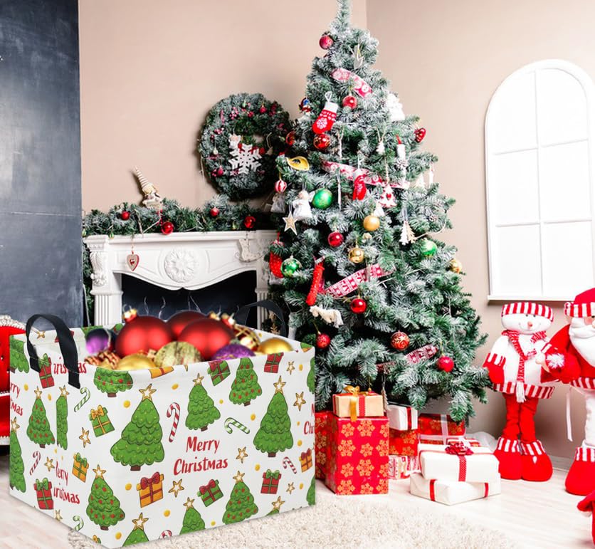 Durable Material:Our cute christmas baskets are made of canvas fabric+inside is lined with waterproof PE coating, lightweight and simple for carrying,reusable, not easy to break down or fade.It can be wiped clean with a damp cloth or with a washing machine.