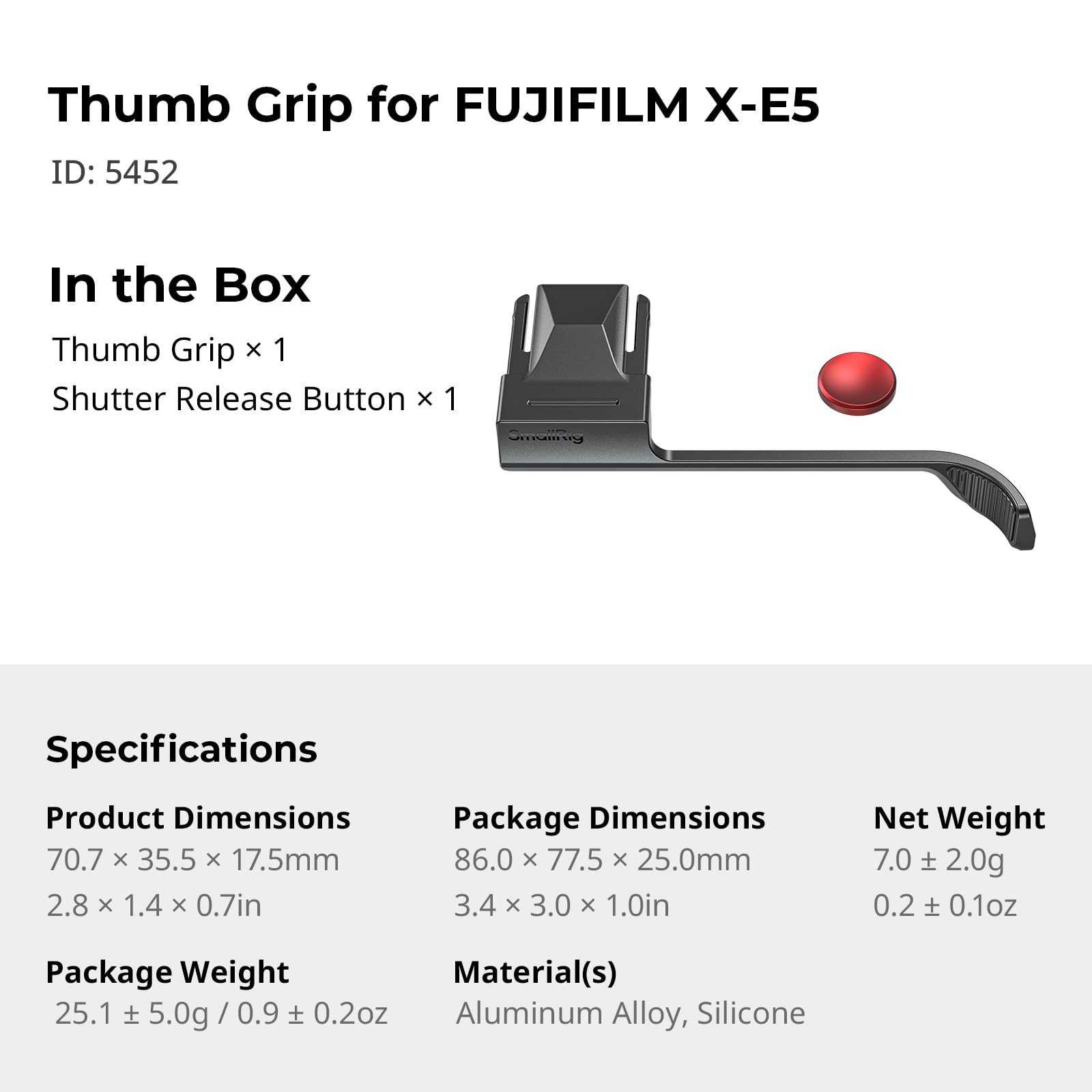 Ergonomic Design: SMALLRIG Thumb Grip for FUJIFILM X-E5 is designed to enhance the grip and improve safety when holding the camera with one hand.